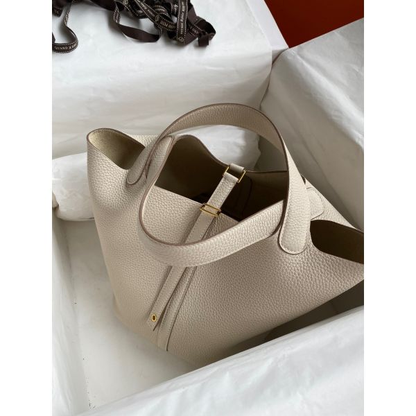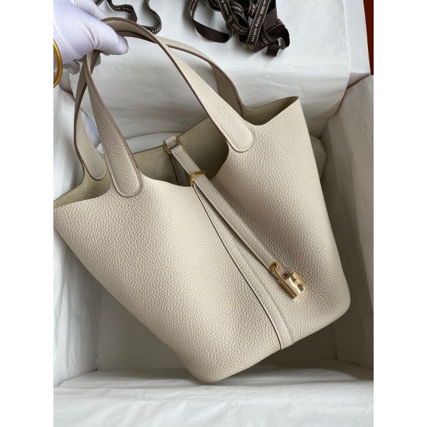 Hermes Picotin Lock 22 Handmade Bag in Craie Clemence Leather