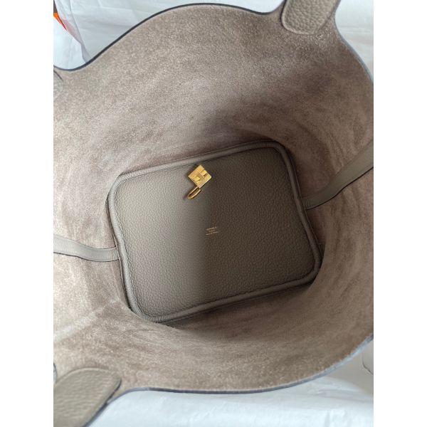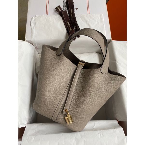 Hermes Picotin Lock 22 Handmade Bag in Gris Asphalt Clemence Leather
