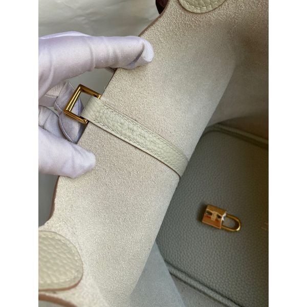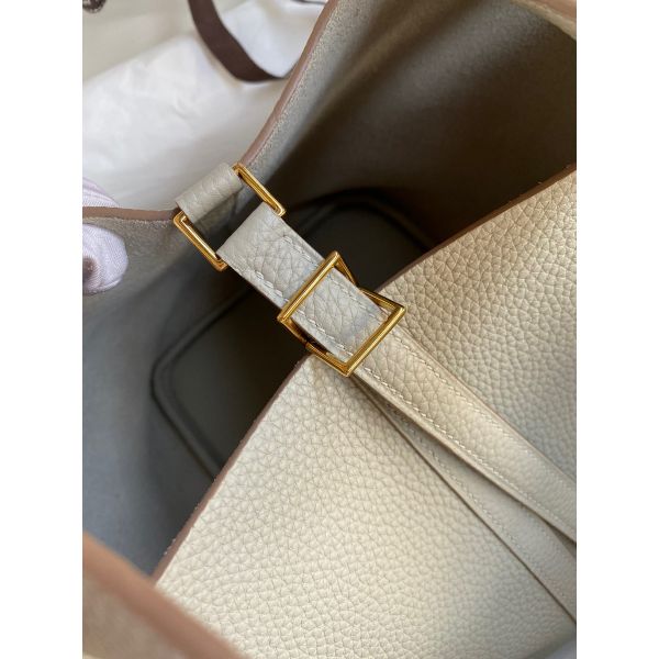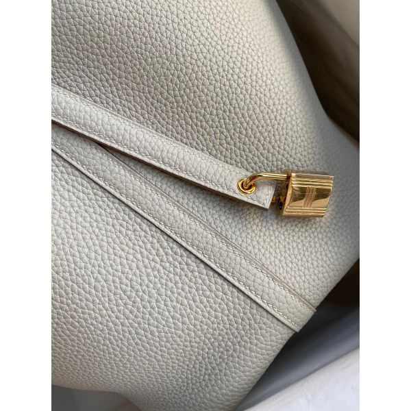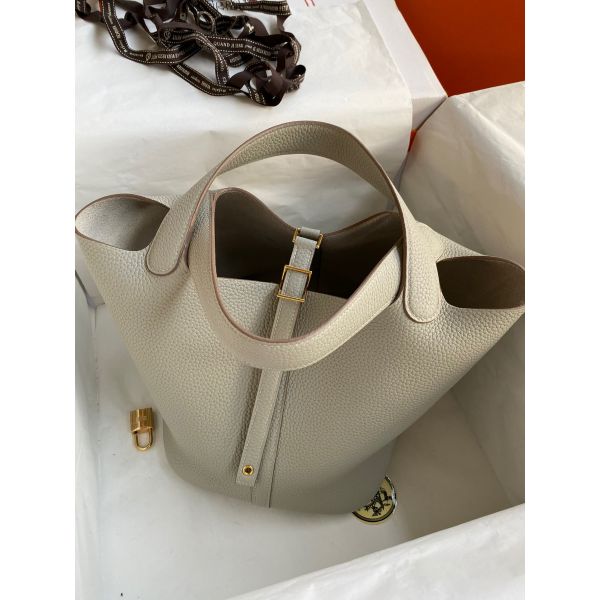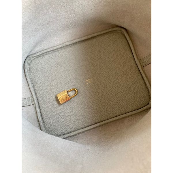 Hermes Picotin Lock 22 Handmade Bag in Pearl Grey Clemence Leather