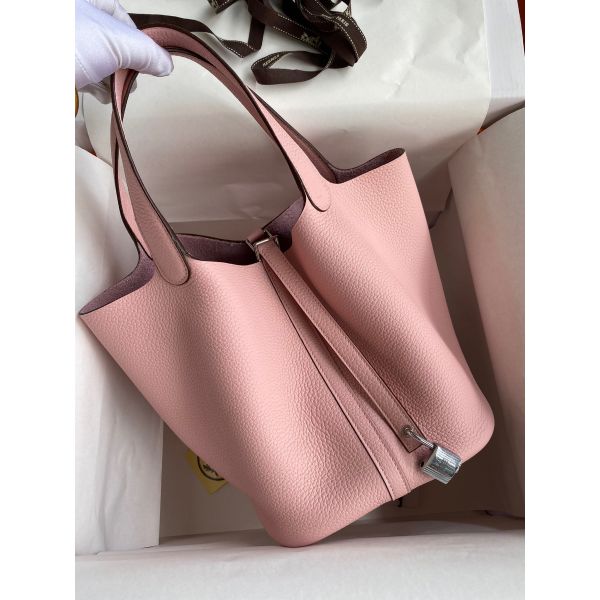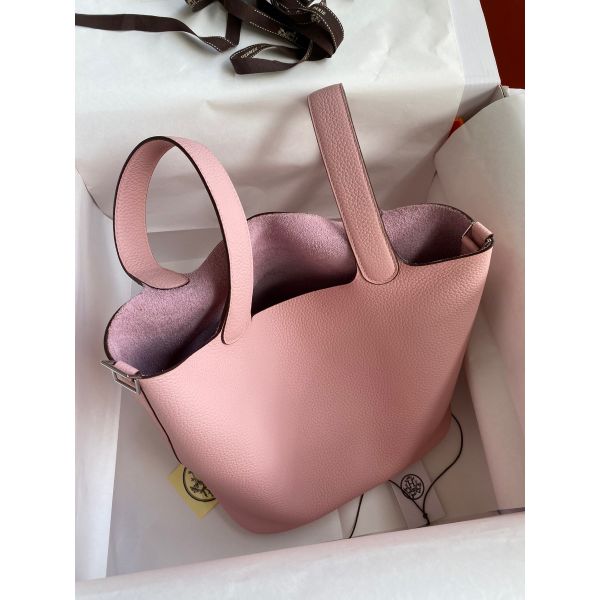 Hermes Picotin Lock 22 Handmade Bag in Pink Clemence Leather
