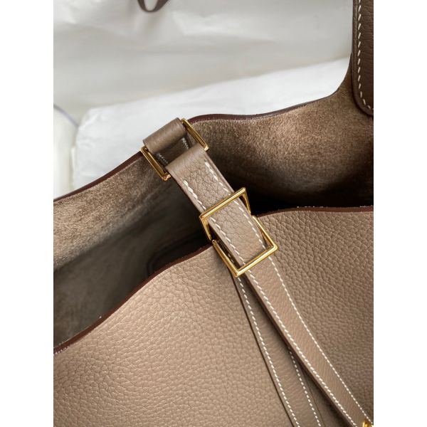 Hermes Picotin Lock 22 Handmade Bag in Taupe Clemence Leather
