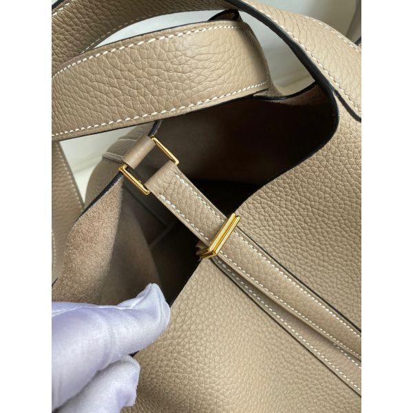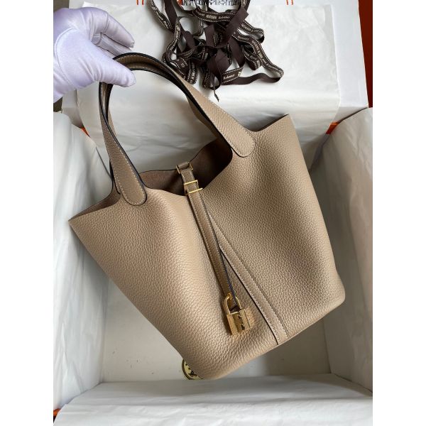 Hermes Picotin Lock 22 Handmade Bag in Tourterelle Clemence Leather