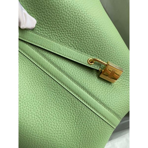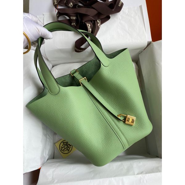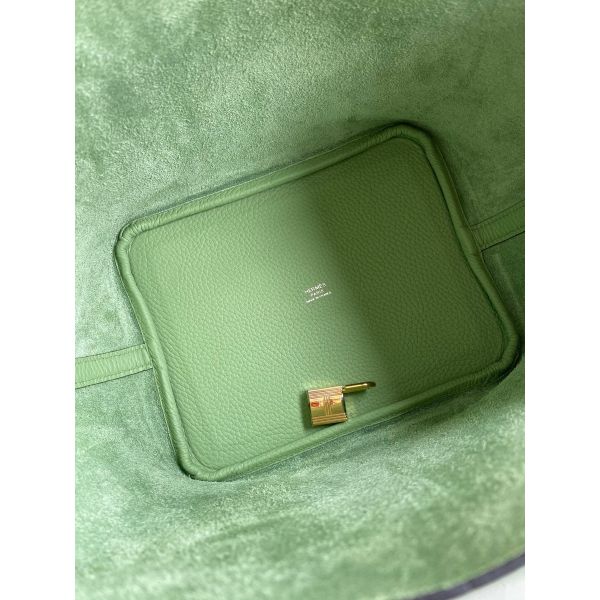 Hermes Picotin Lock 22 Handmade Bag in Vert Criquet Clemence Leather