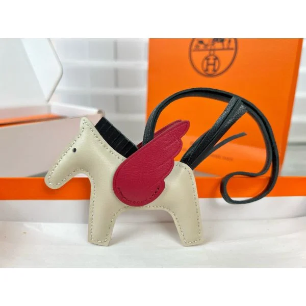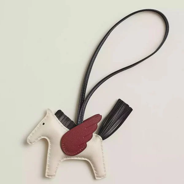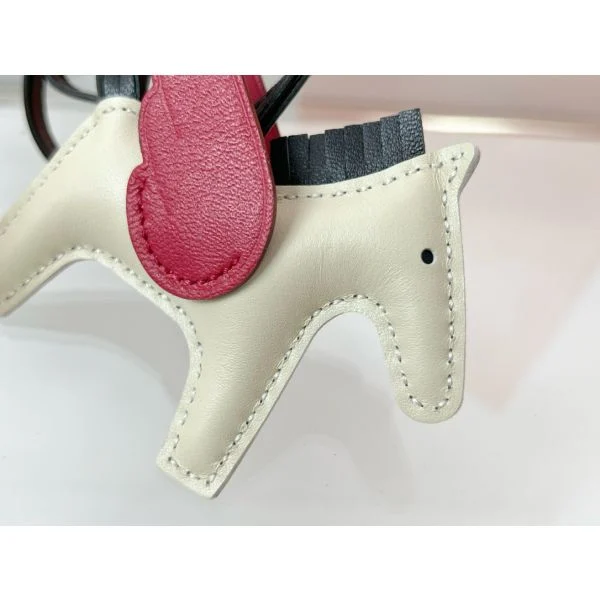 Hermes Rodeo Pegase PM Bag Charm in Craie/Black/Red Lambskin