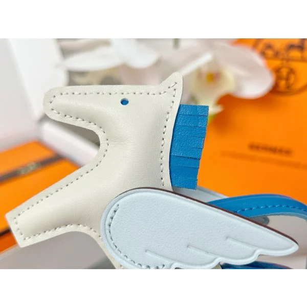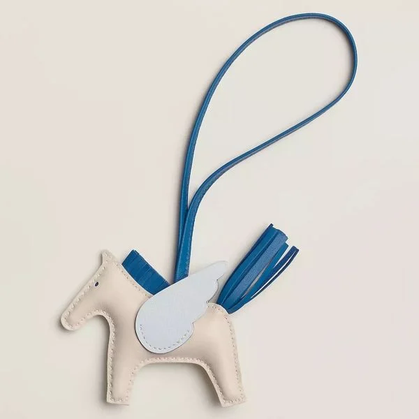 Hermes Rodeo Pegase PM Bag Charm in Craie/Blue/Blue Brume Lambskin