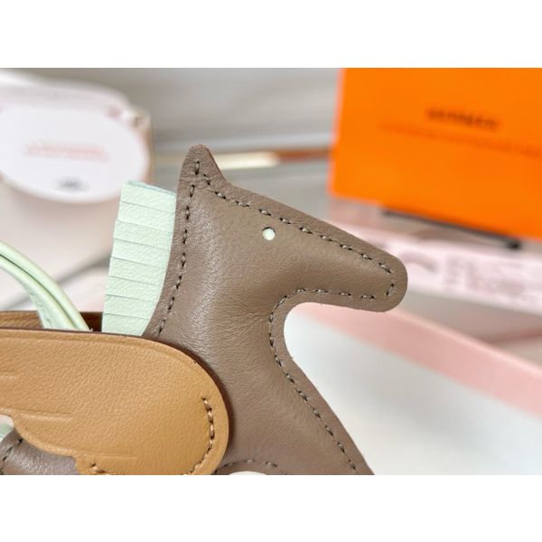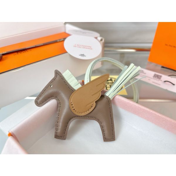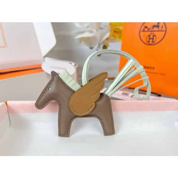 Hermes Rodeo Pegase PM Bag Charm in Taupe/Biscuit/Vert Fizz Lambskin
