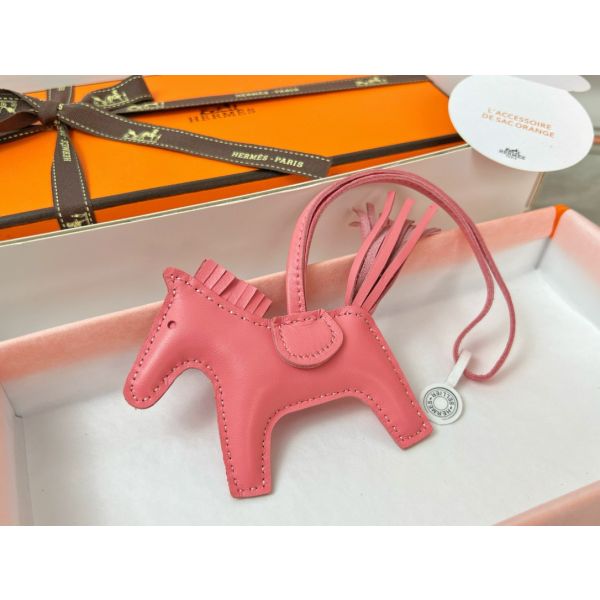 Hermes Rodeo PM Bag Charm in Rose Lipstick Lambskin