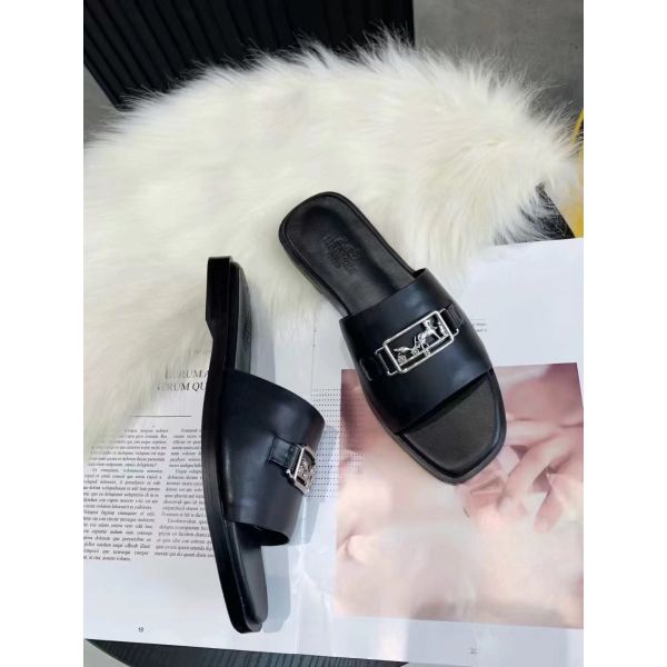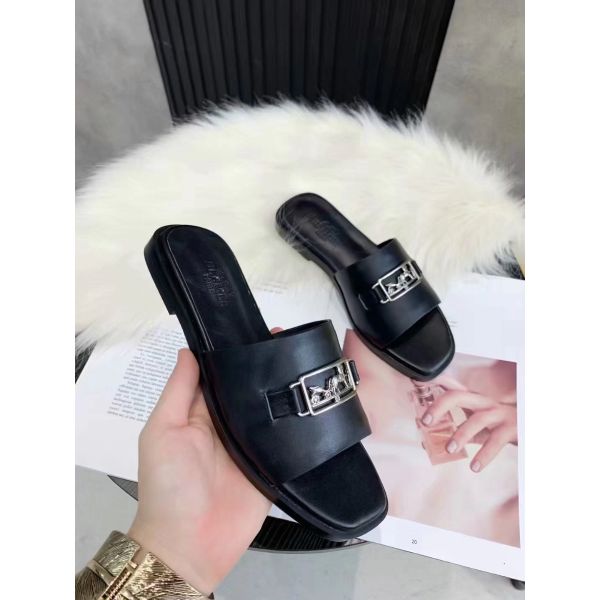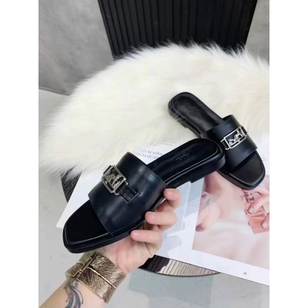 The Viaggio sandals contrast the sleek simplicity of its upper in calf leather with detailed openwork hardware. This model is characterized by its palladium plated buckle adds to the femininity of this design.
