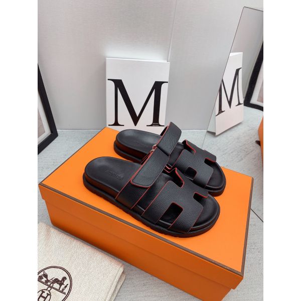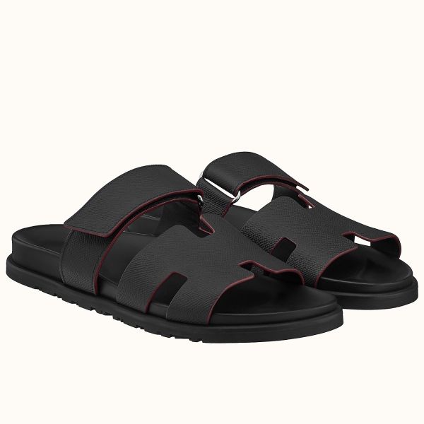 Hermes Women’s Chypre Sandals In Black Epsom Calfskin