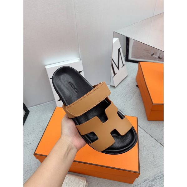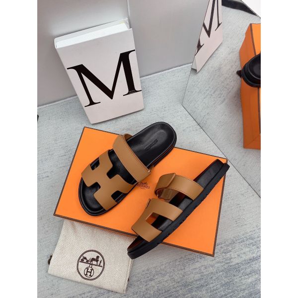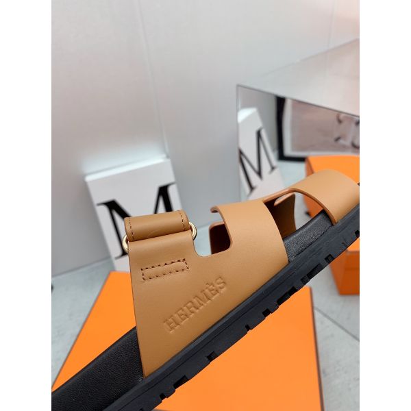 Hermes Women’s Chypre Sandals In Brown Calfskin