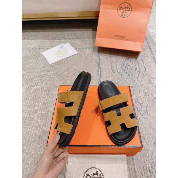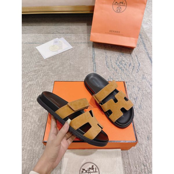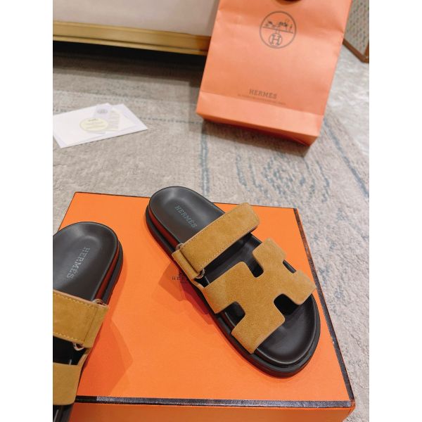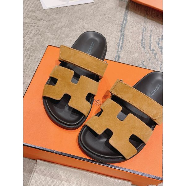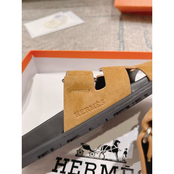 Hermes Women’s Chypre Sandals In Brown Suede Calfskin