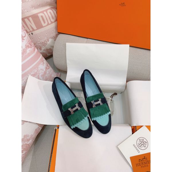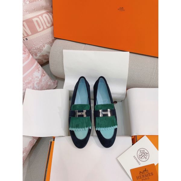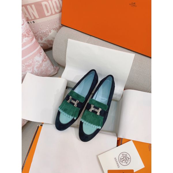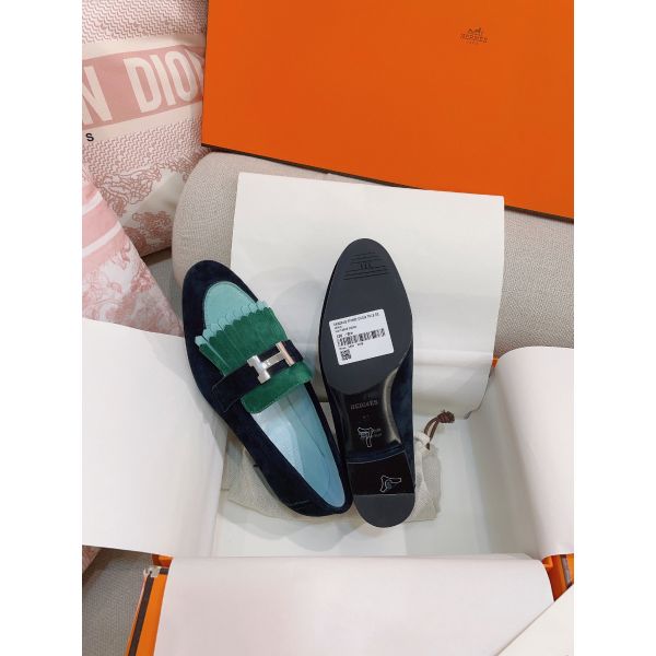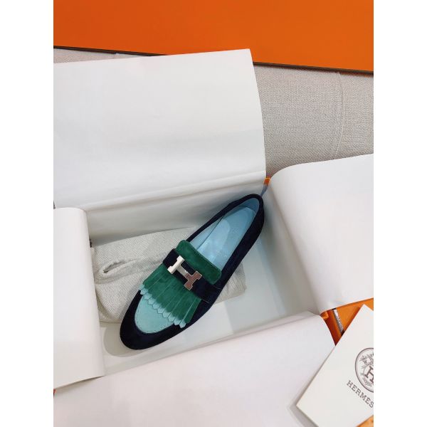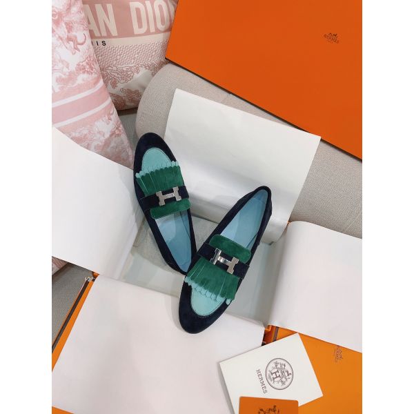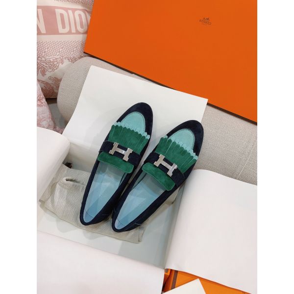 Hermes Women’s Royal Loafers in Multicolor Suede Leather