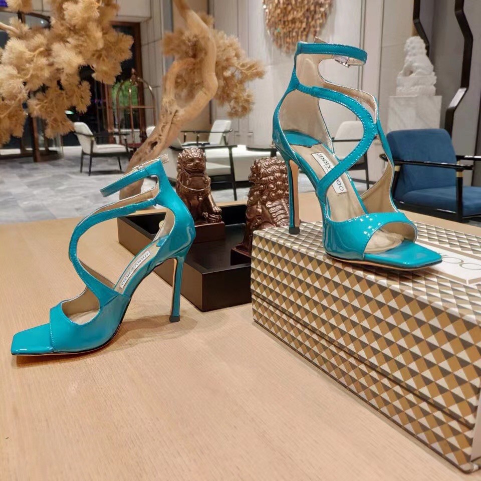 Feminine and distinct, our AZIA sandals are presented in malibu patent leather and showcase signature delicate curved straps that flatteringly snake up your feet. This Italian-crafted pair features a slim heel and a modern square toe.