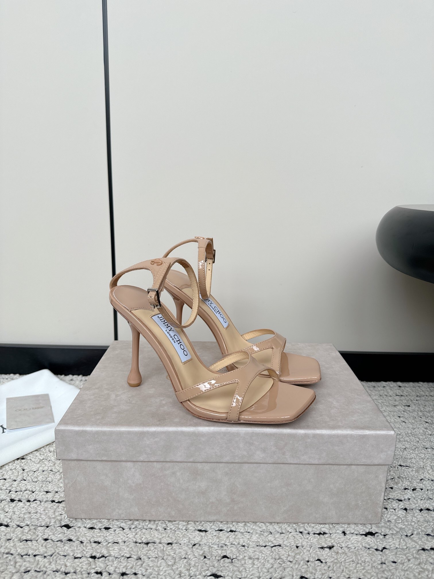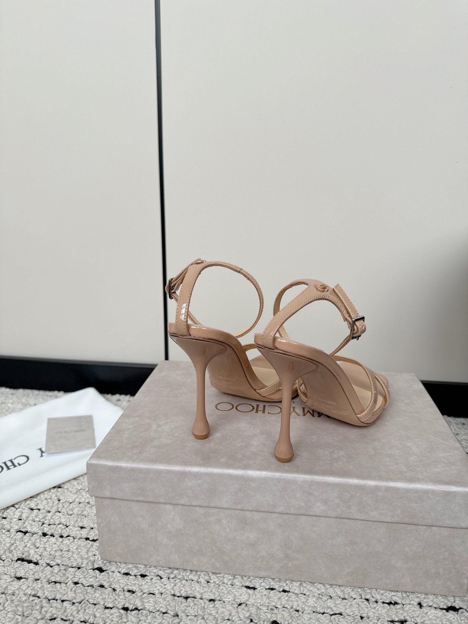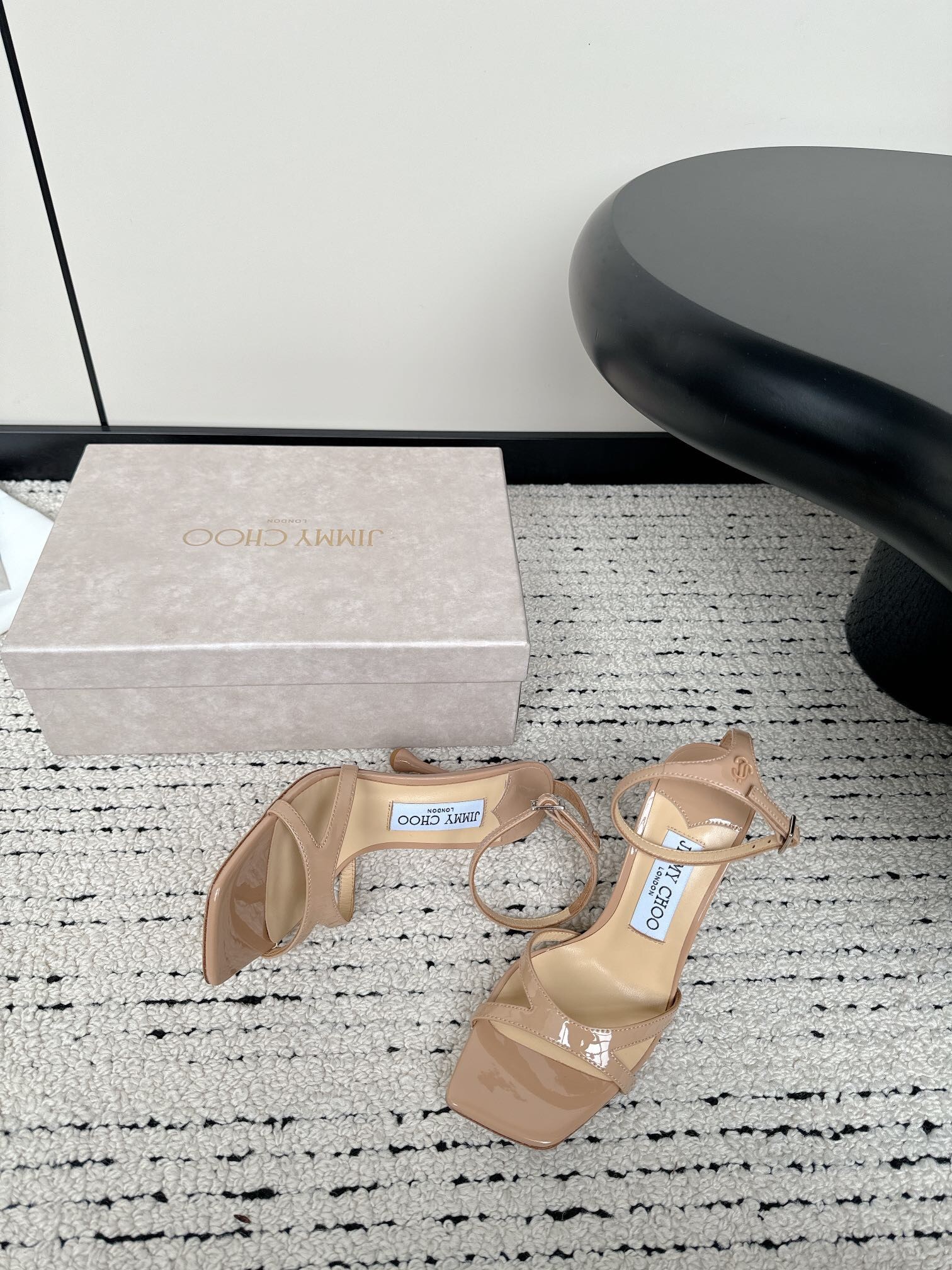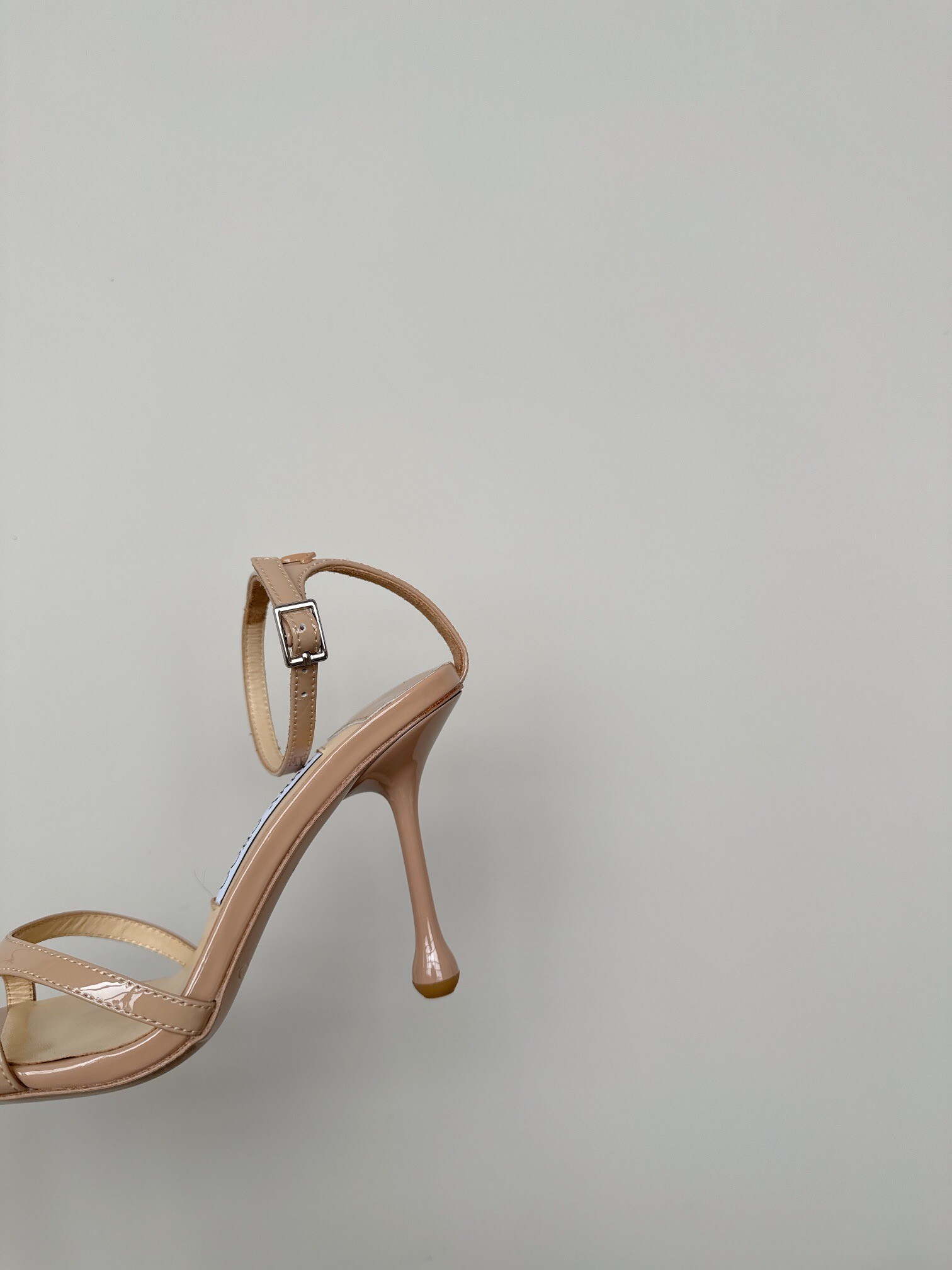 Jimmy Choo Ixia Sandals 95mm in Beige Patent Calfskin