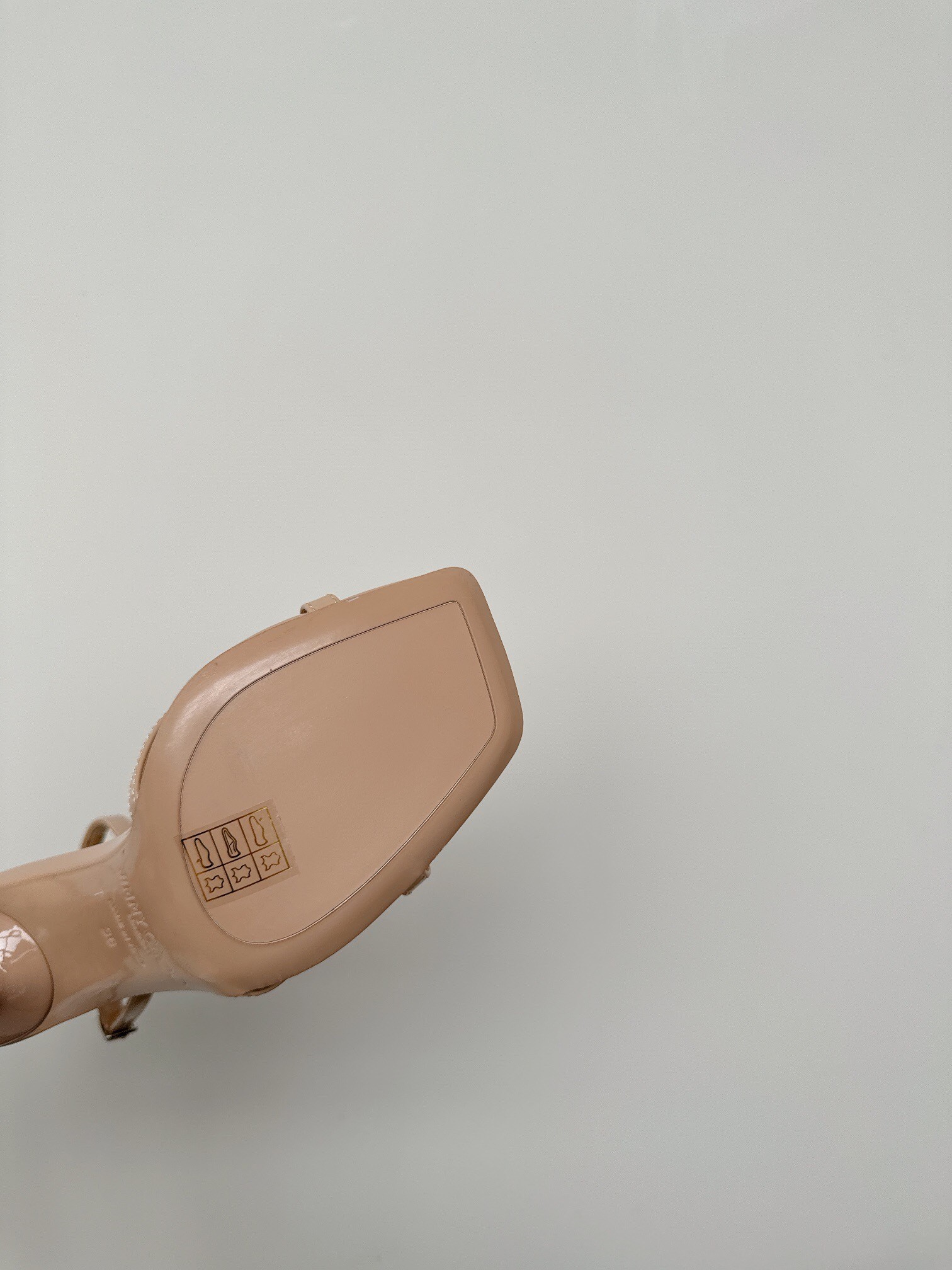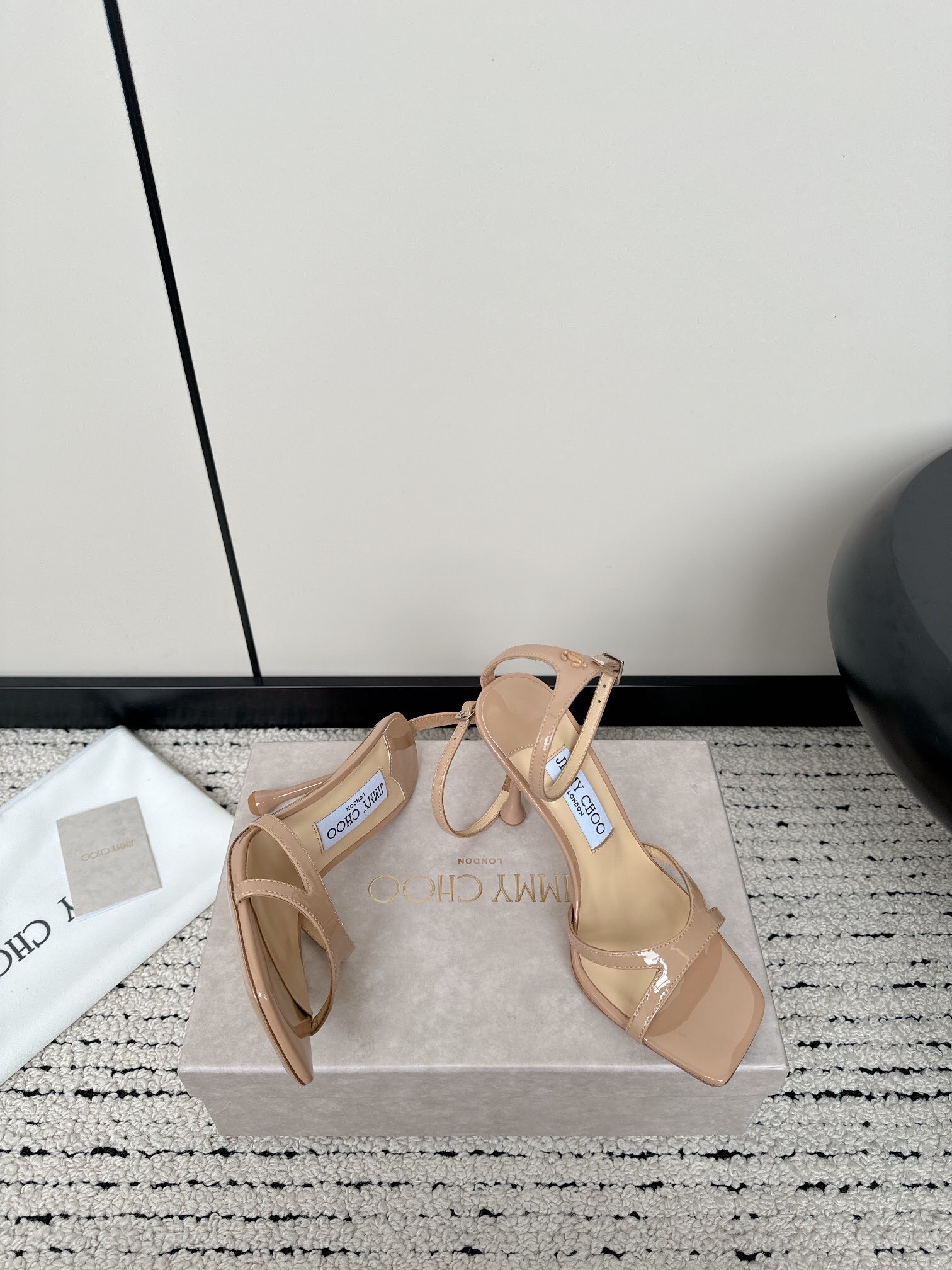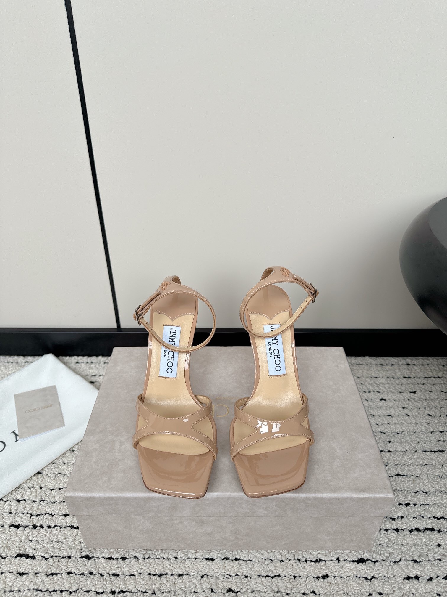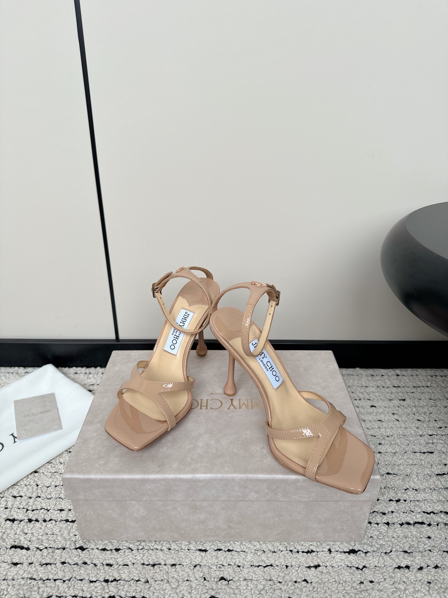 Jimmy Choo Ixia Sandals 95mm in Beige Patent Calfskin