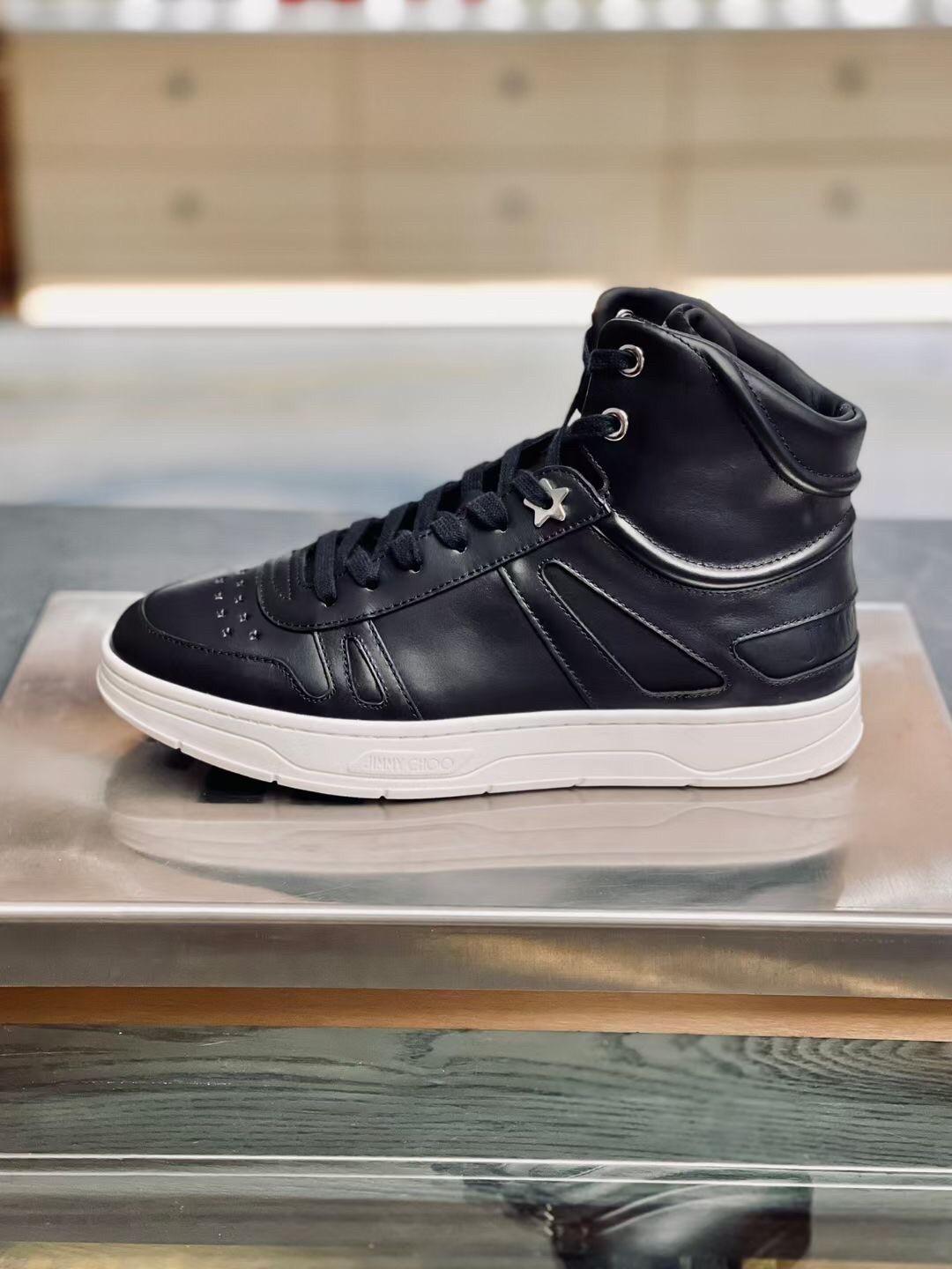 The iconic HAWAII trainer has evolved into a high-top style. Crafted from calf leather, it is presented with a vintage-inspired sole and padded cuff, alongside traditional characteristics of the classic HAWAII; star eyelets, a lace-up front and Jimmy Choo embossing at the heel. Pair easily with any off-duty outfit.