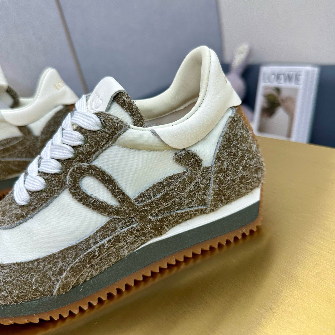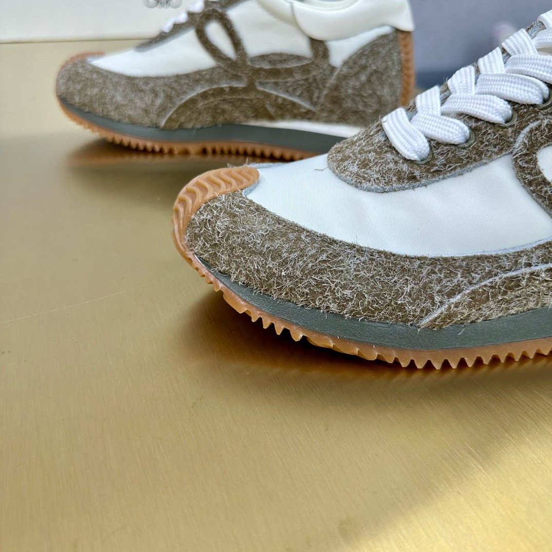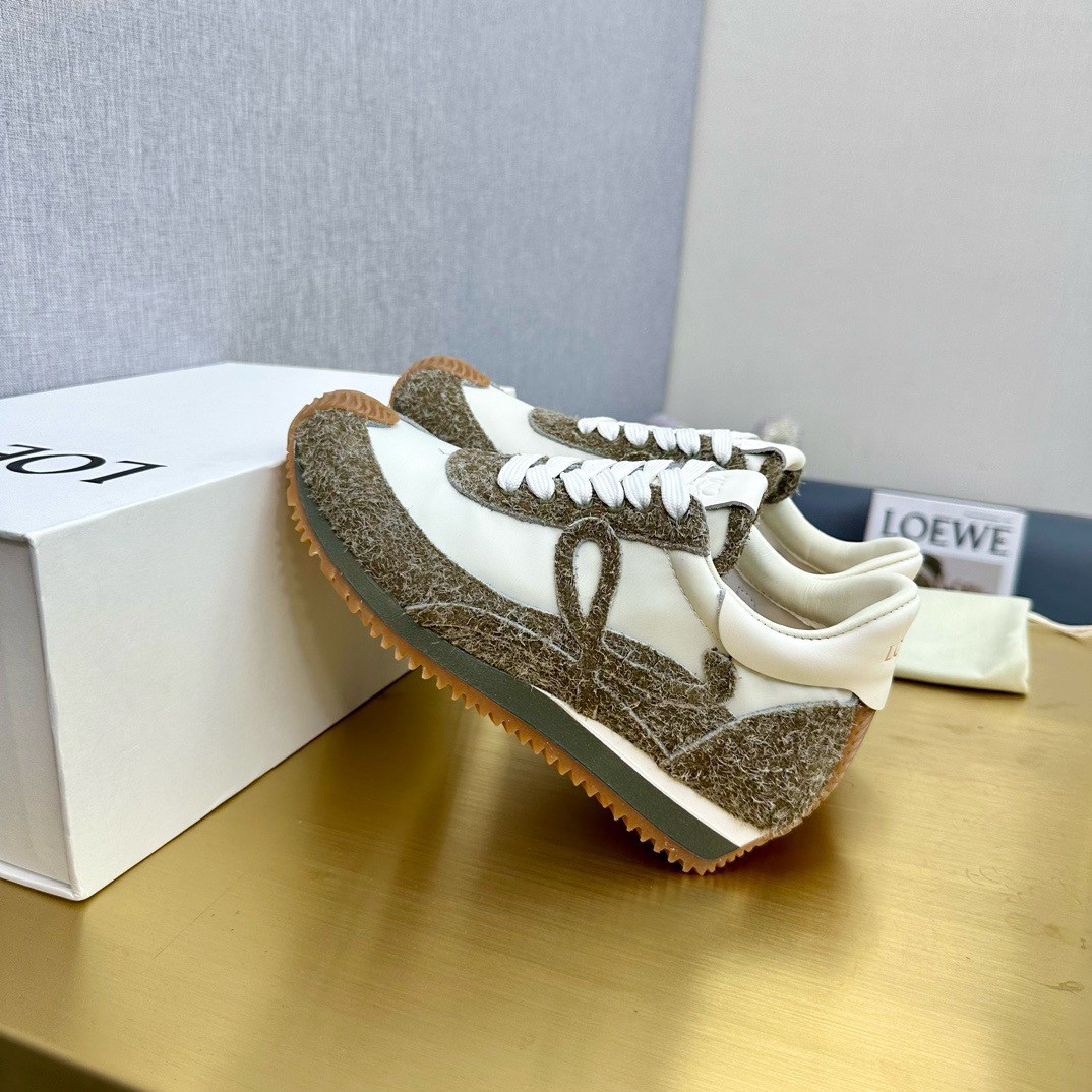 Loewe’s Flow Runner sneakers are detailed with swirling appliqués that depict the house’s signature Anagram emblem. Modeled on retro styles, they’ve been crafted from brushed suede and shell with leather trims. The gripped rubber soles extend along the toes and heels.