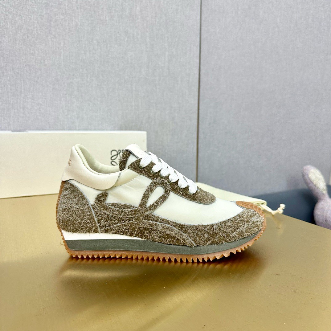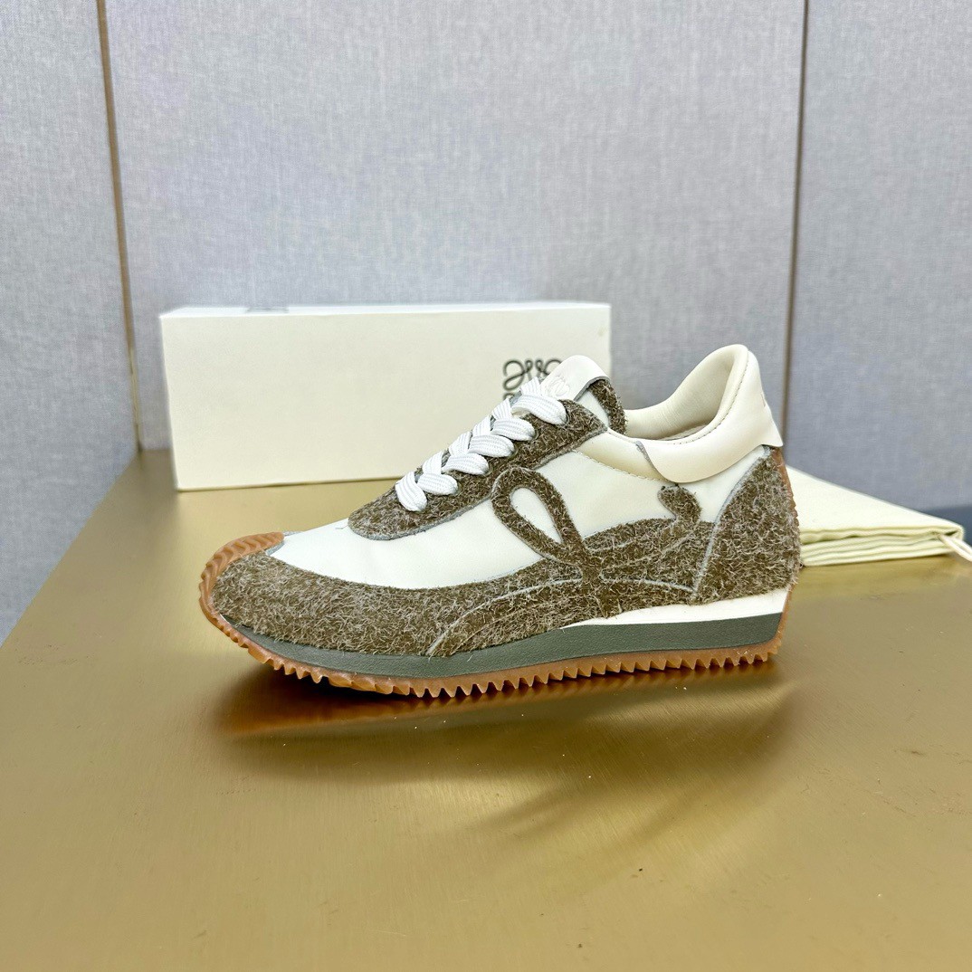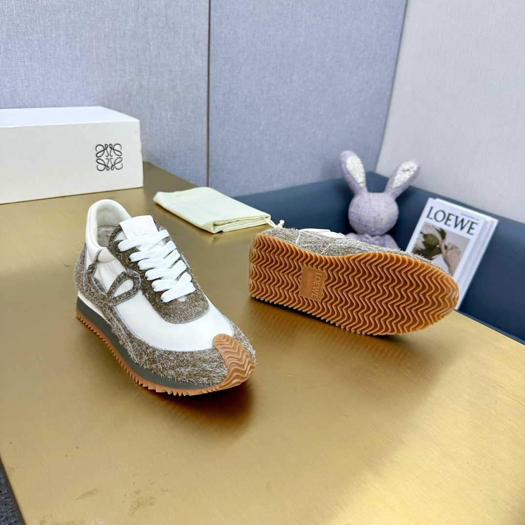 Loewe’s Flow Runner sneakers are detailed with swirling appliqués that depict the house’s signature Anagram emblem. Modeled on retro styles, they’ve been crafted from brushed suede and shell with leather trims. The gripped rubber soles extend along the toes and heels.