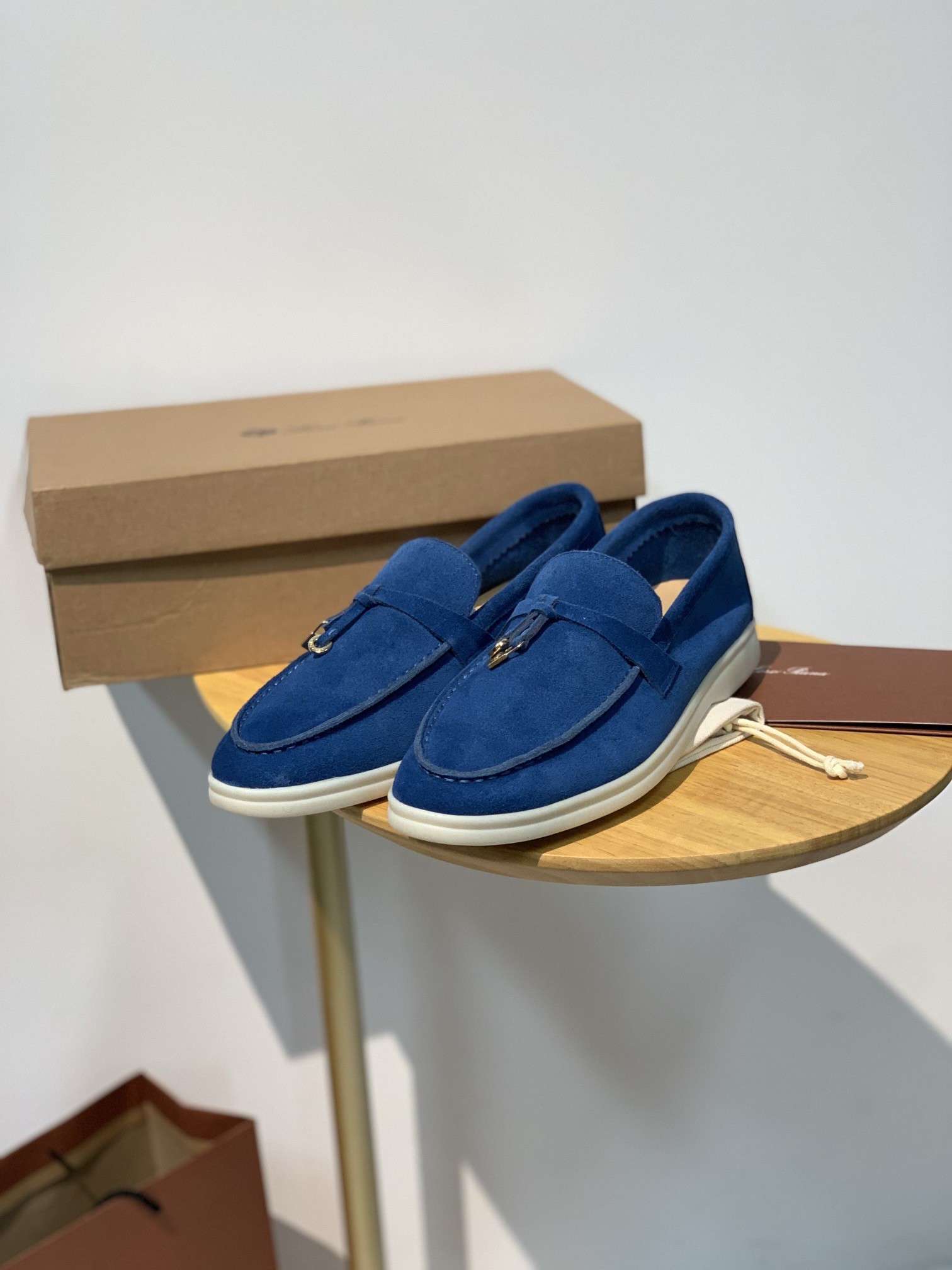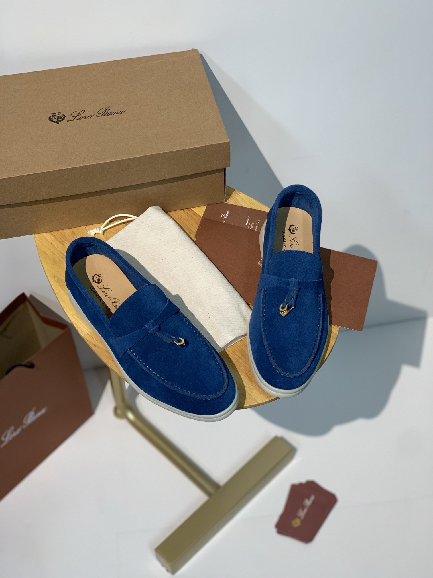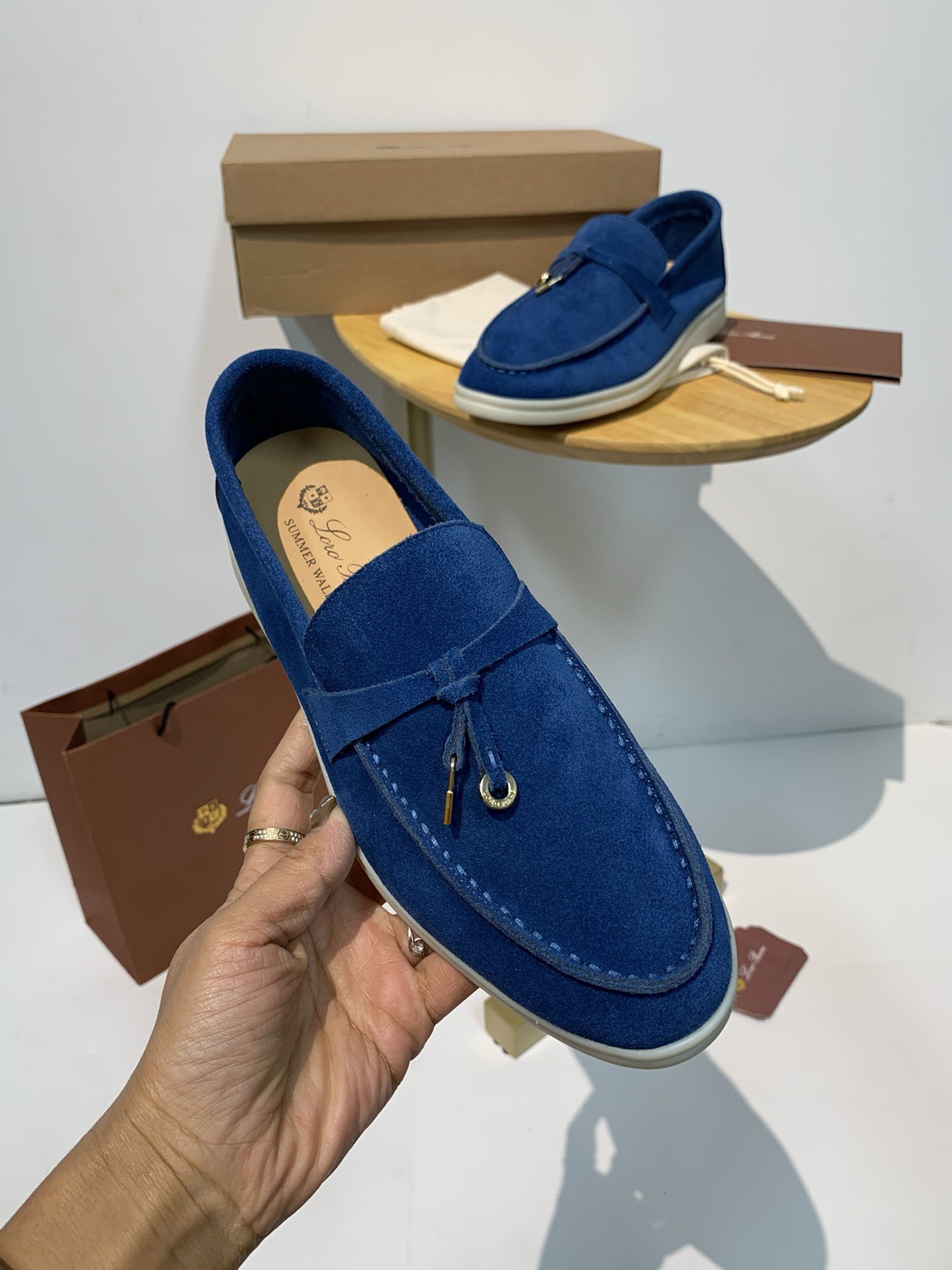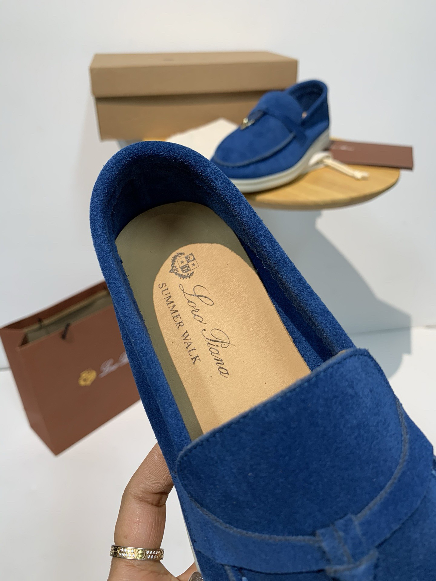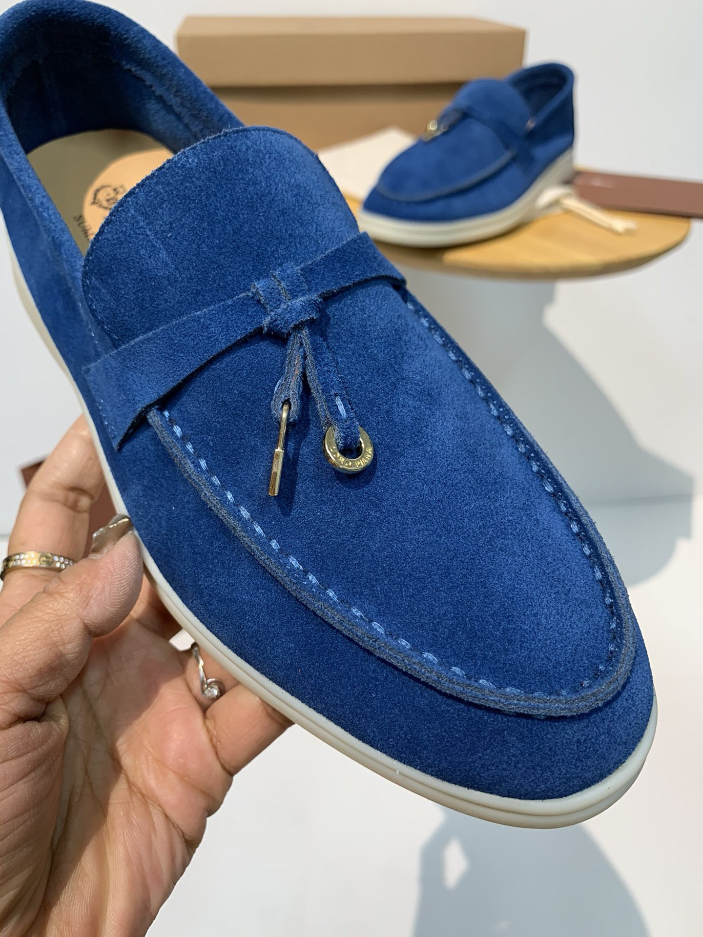 Loro Piana Women’s Summer Charms Walk Loafers in Blue Fluorite Suede Leather
