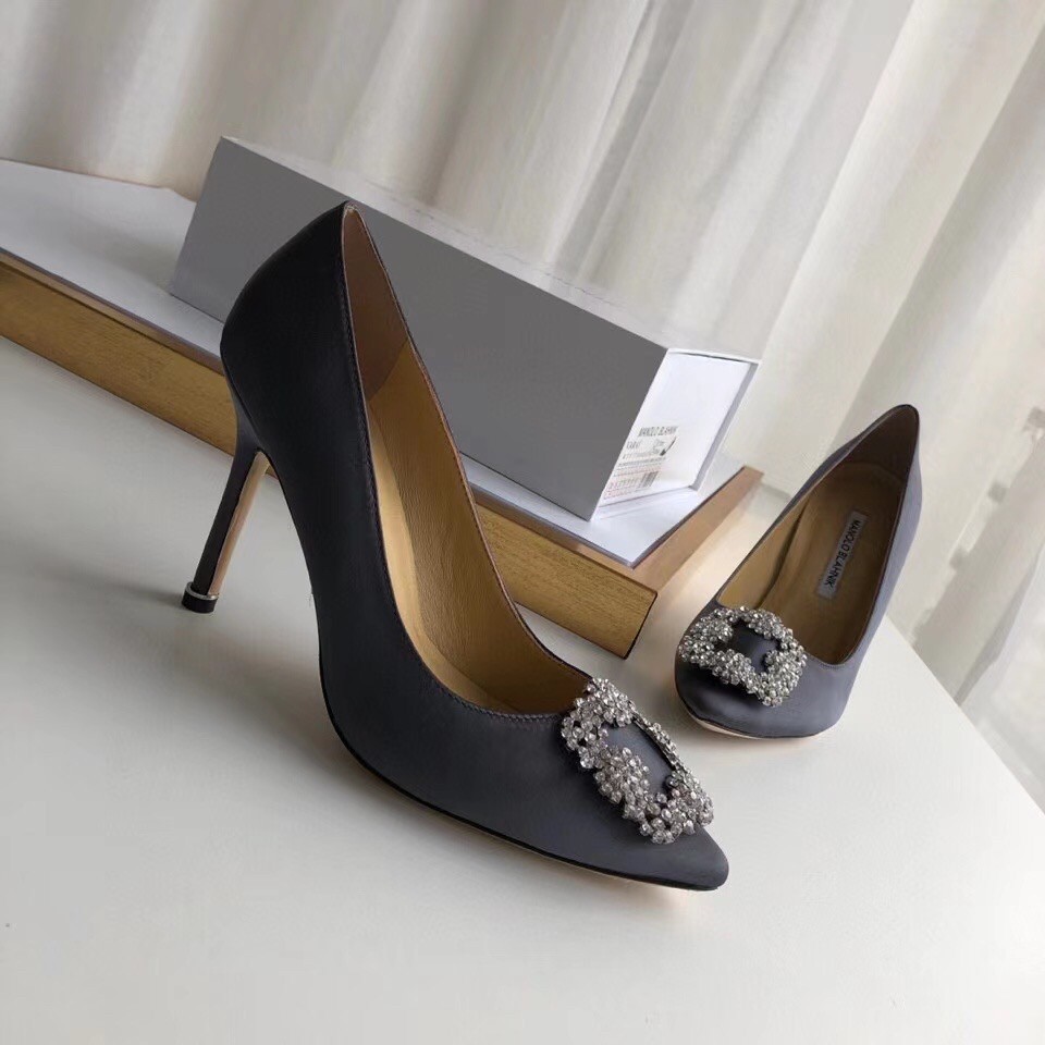 Manolo Blahnik Hangisi 105 Pumps In Grey Satin