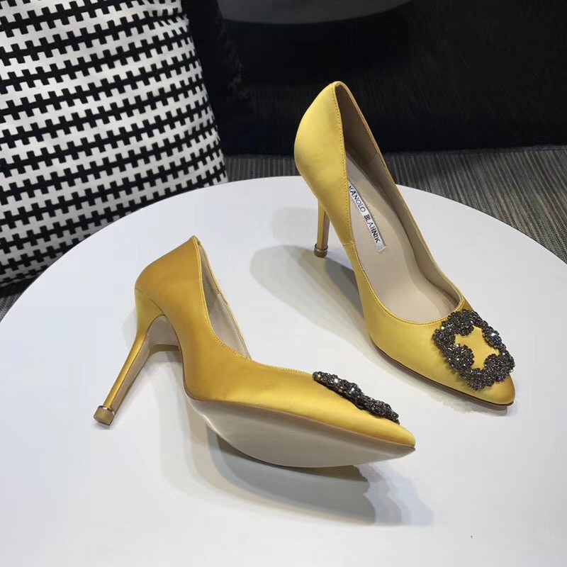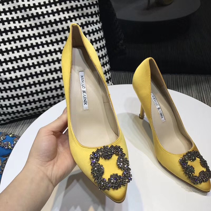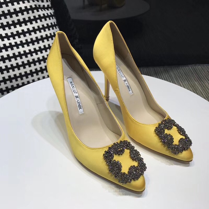 Manolo Blahnik Hangisi 105 Pumps In Yellow Satin