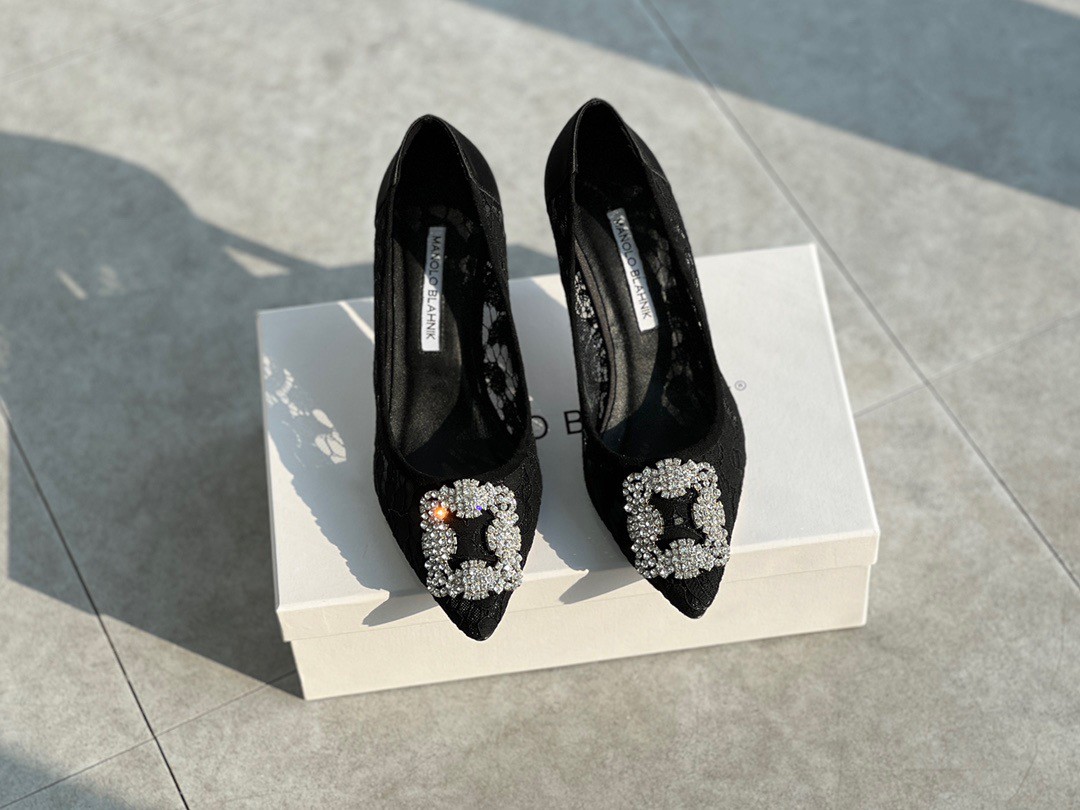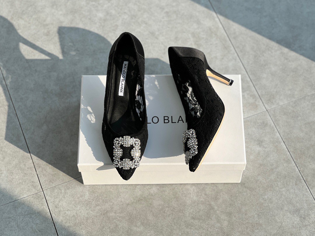 Manolo Blahnik Hangisi 70 Pumps In Black Lace