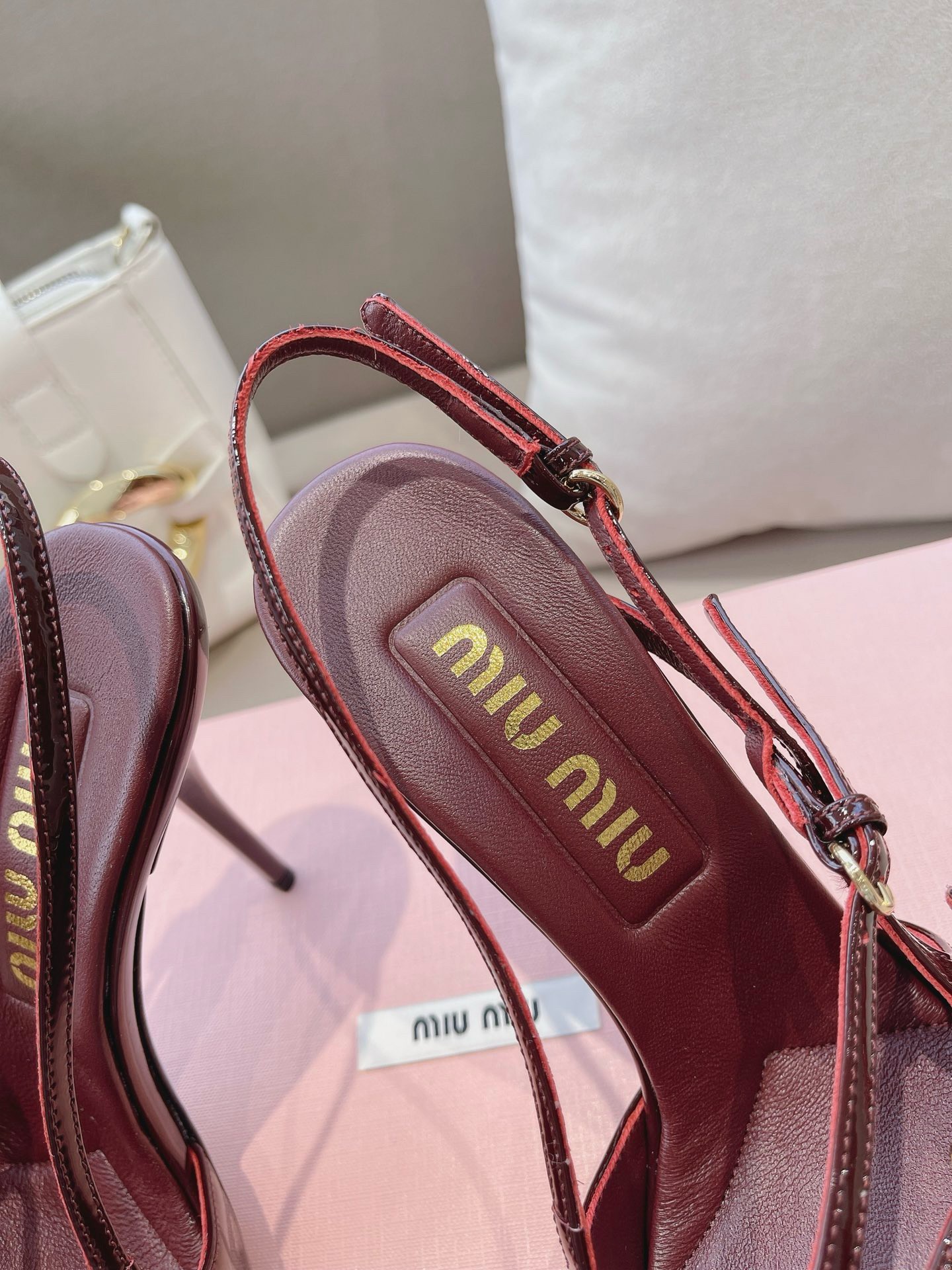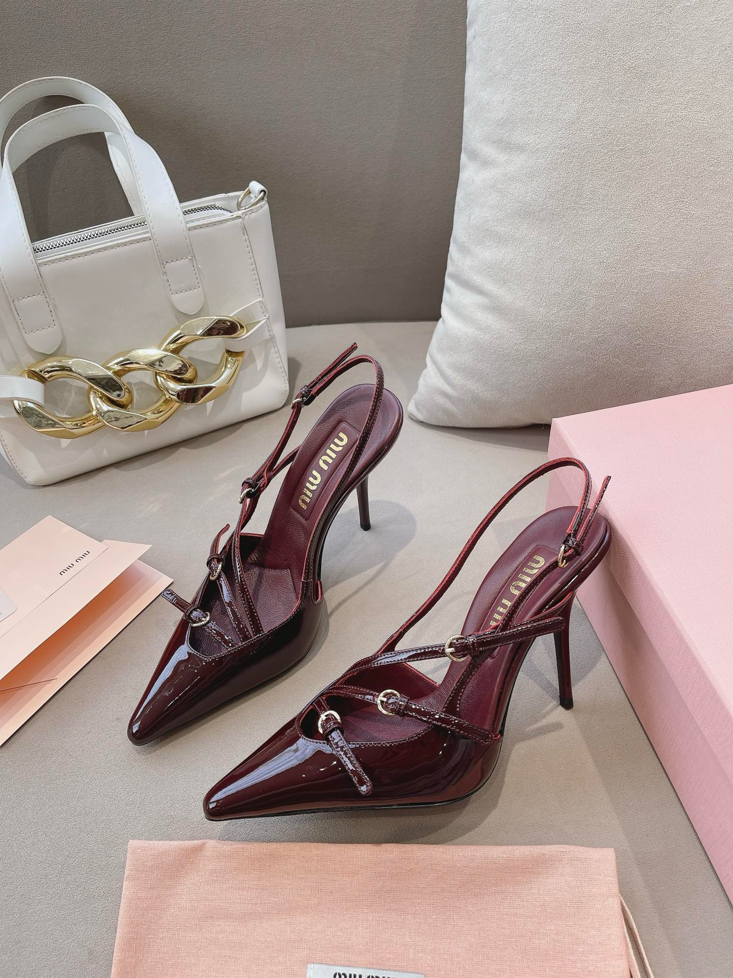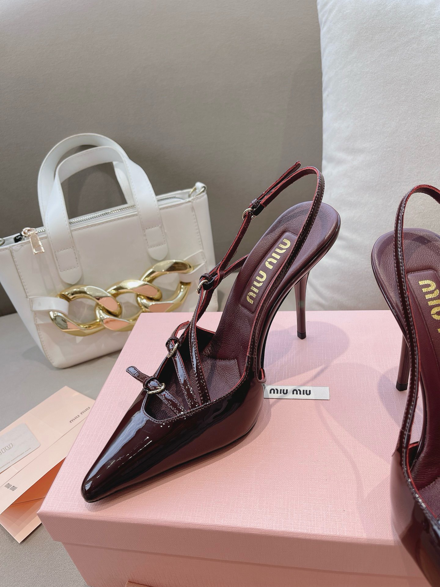A classic style meets Miu Miu’s rebellious soul in these patent leather slingbacks. The buckles introduce a refined contrast and add an irreverent touch to the shoe, giving it a strong personality.