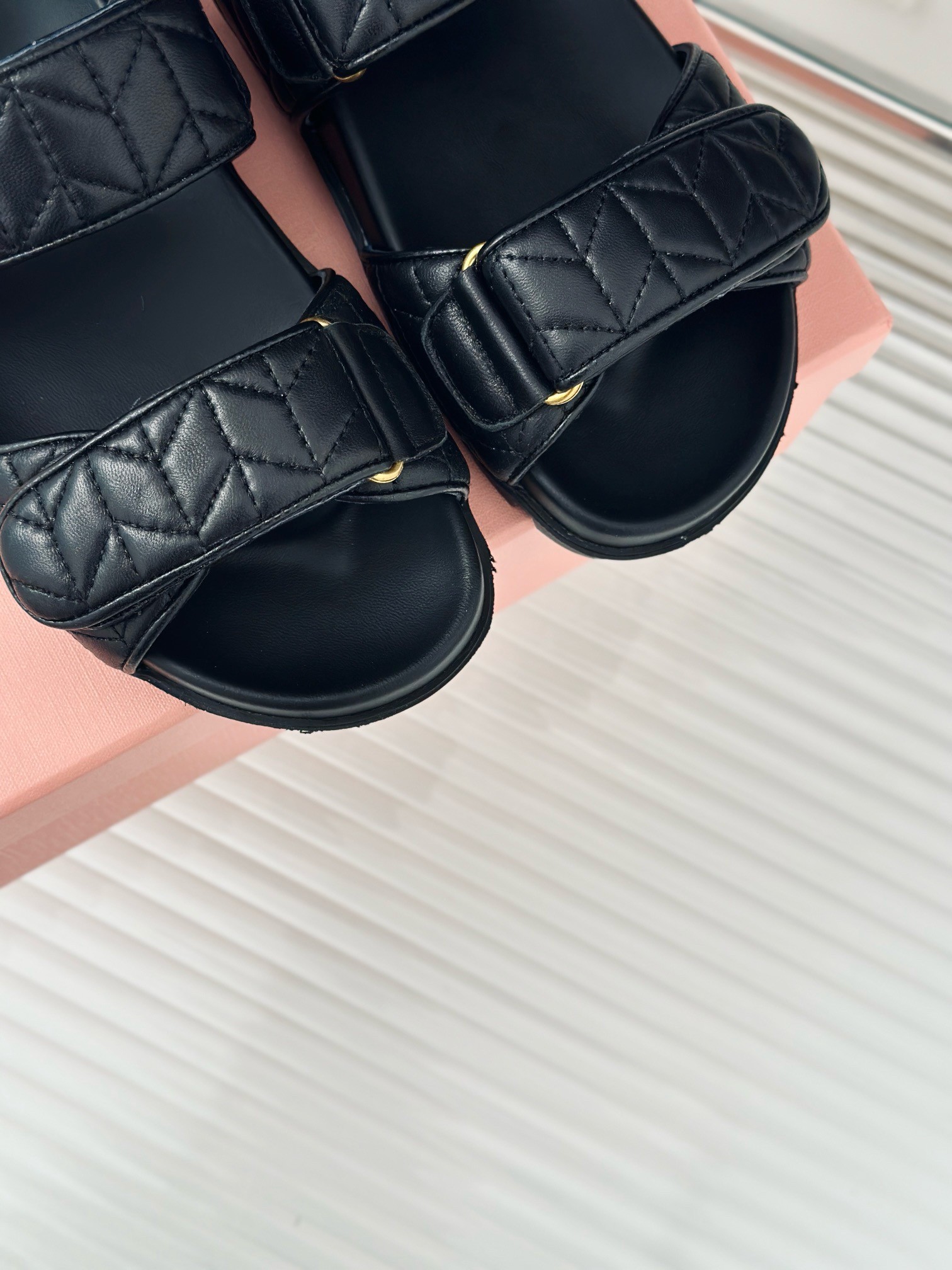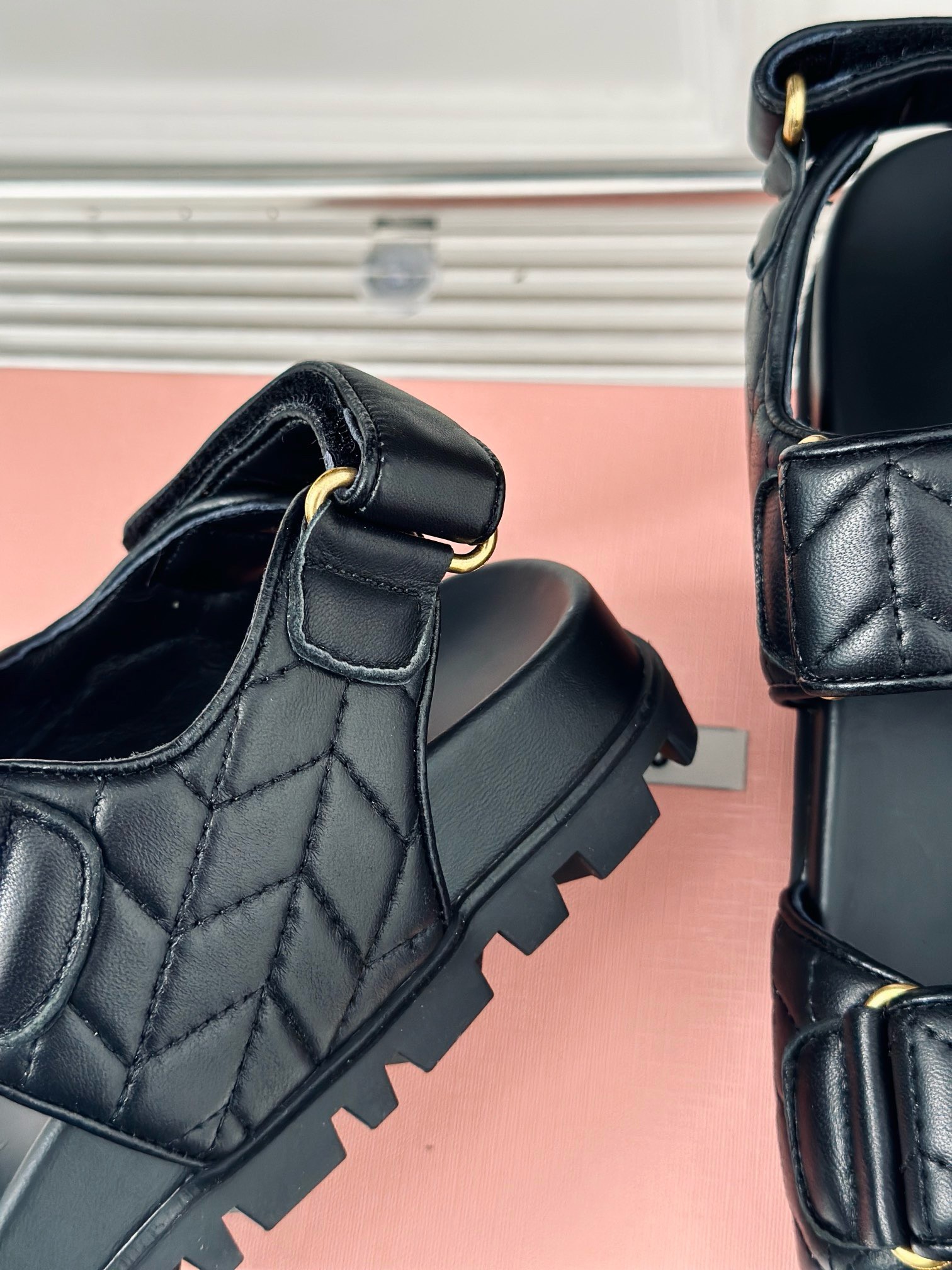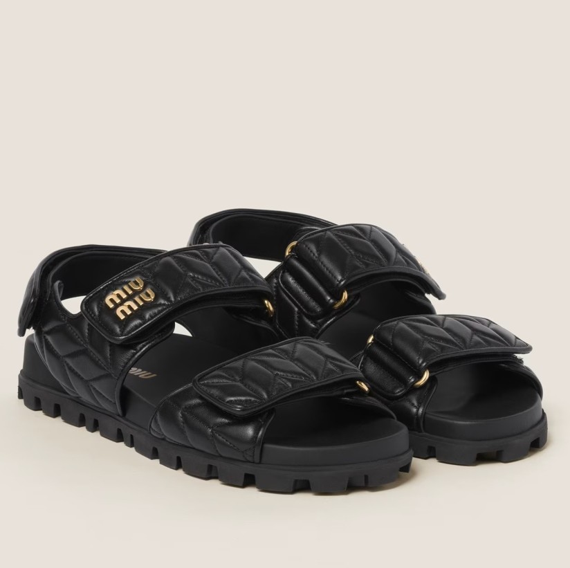The lightly padded, three-dimensional effect and fine craftsmanship of matelassé embellish these sporty leather nappa leather sandals. The metal lettering logo stands out with a color contrast and iconic note on the design of the footwear.
