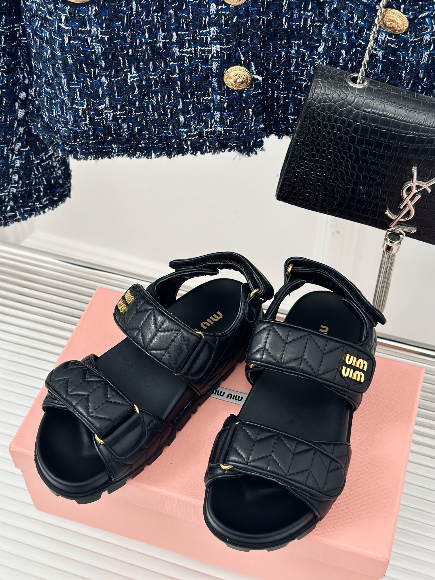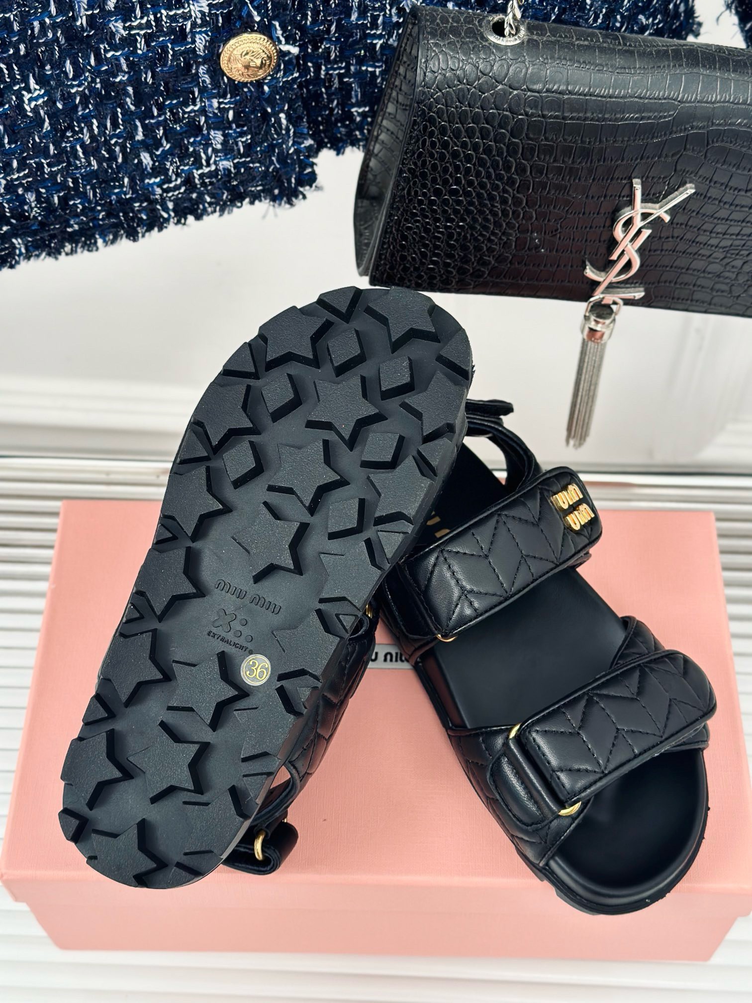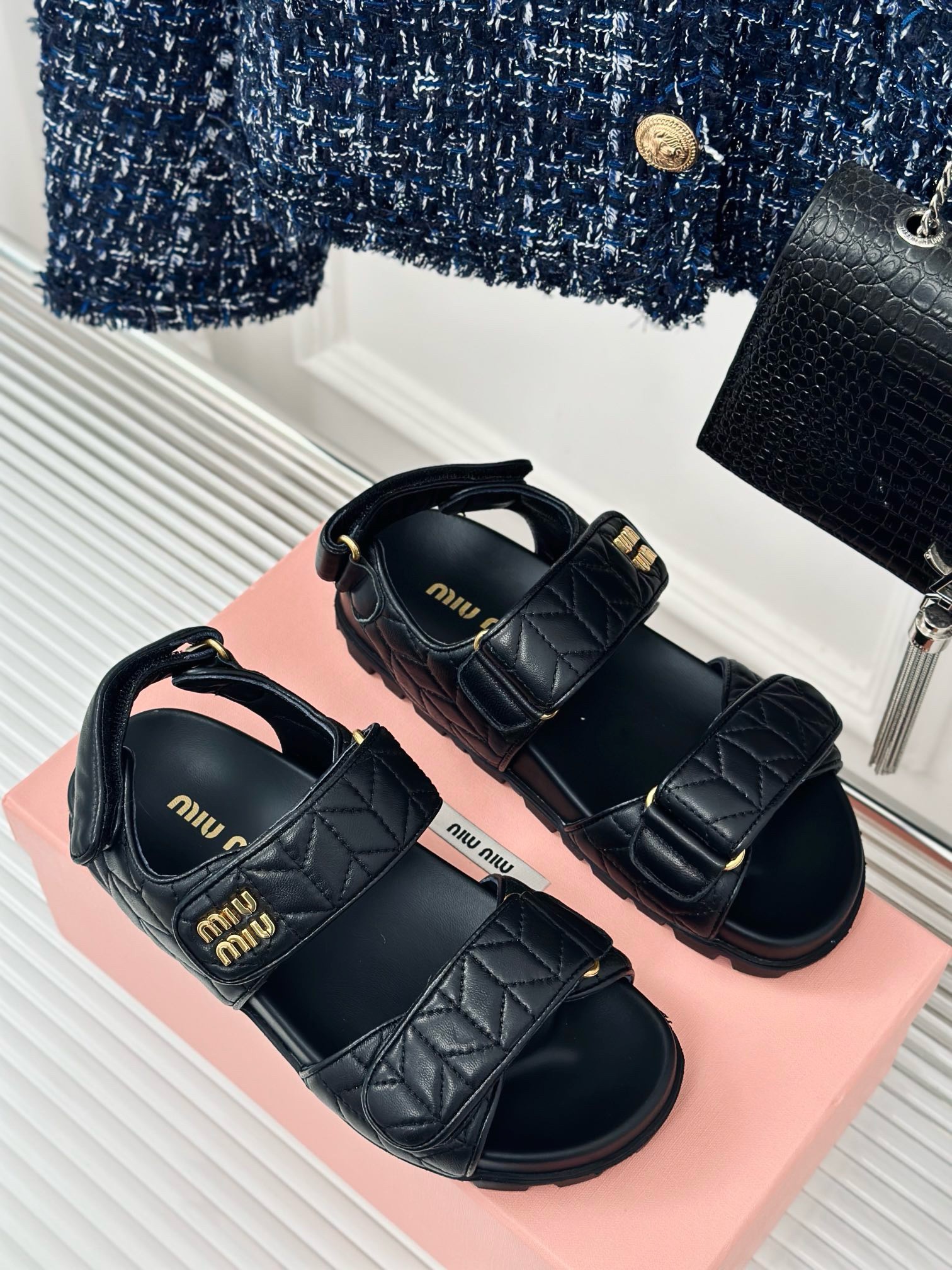 The lightly padded, three-dimensional effect and fine craftsmanship of matelassé embellish these sporty leather nappa leather sandals. The metal lettering logo stands out with a color contrast and iconic note on the design of the footwear.
