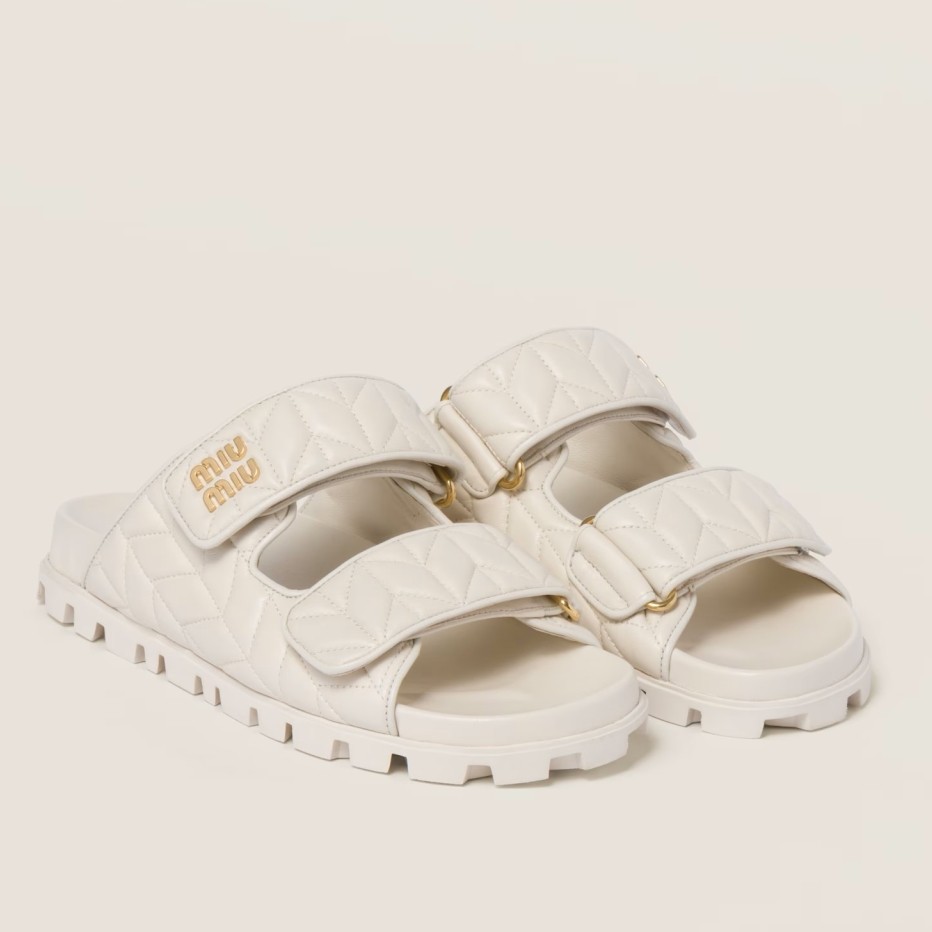 Fine matelassé workmanship creates a refined, textured, three-dimensional effect on these sporty nappa leather slides. The metal lettering logo stands out on the matelassé motif thanks to its contrast in color and texture, giving the sandal an iconic note.