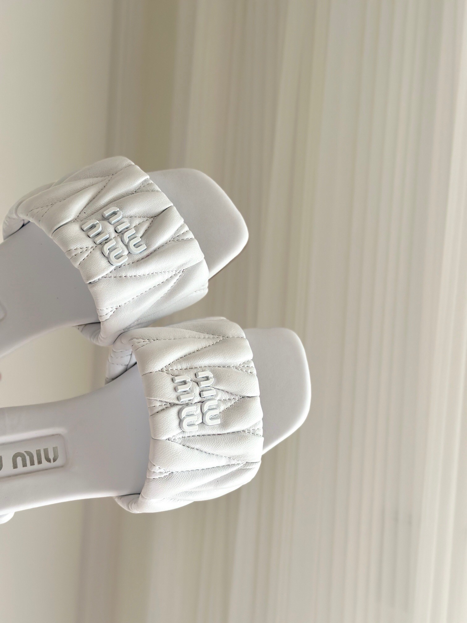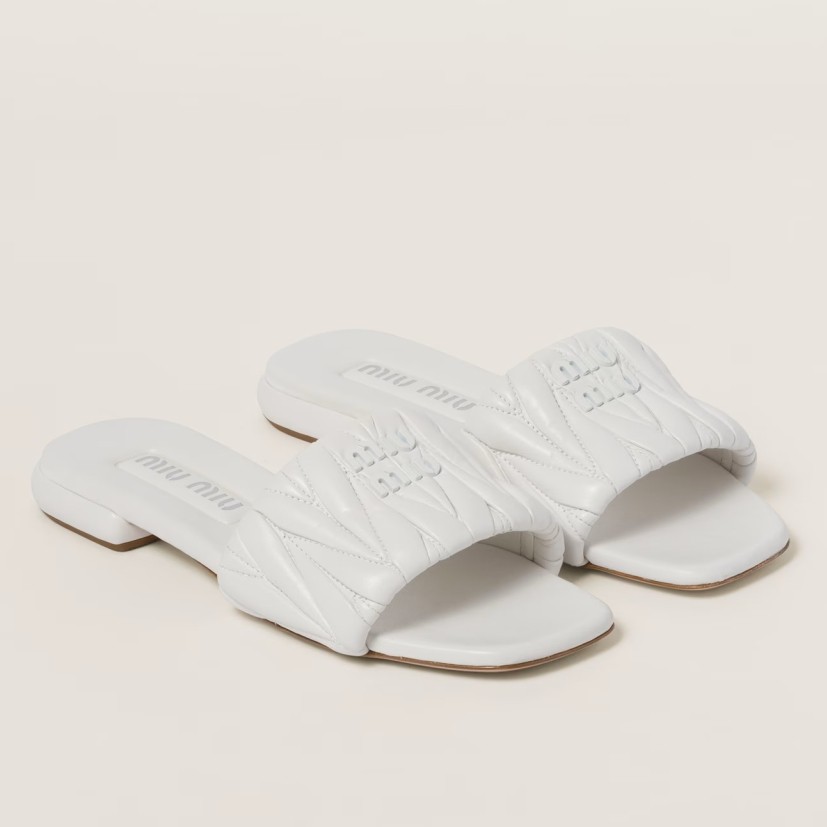 Precious matelassé workmanship revisits the classic aesthetic of sandals thanks to its textured and extremely sophisticated three-dimensional effect. The metal lettering logo enhances the upper with an iconic and distinctive touch, while the leather sole and covered heel complete the design.