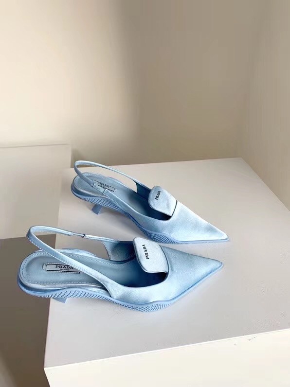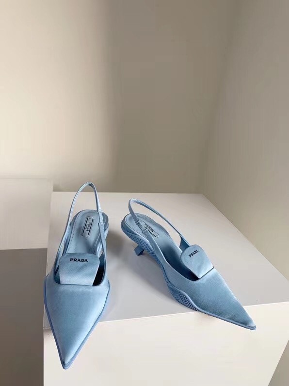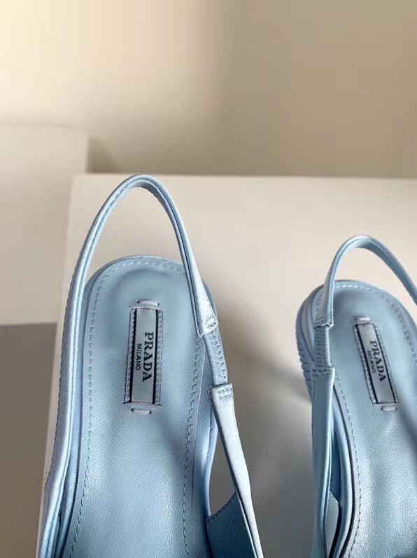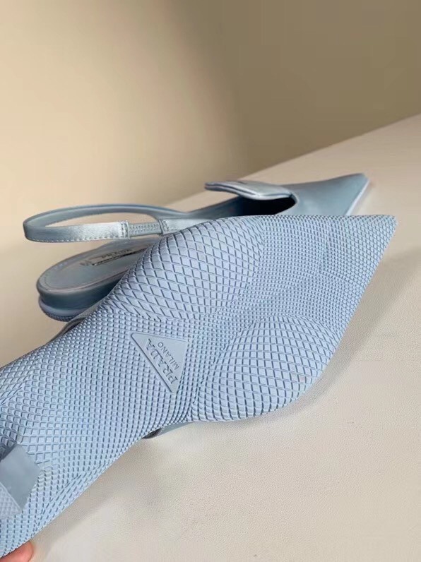 Revisiting a design from the Prada archives of the ’90s, the rubber shell sole envelops the upper of these nylon gabardine slingback pumps, creating a hybrid silhouette that blends a feminine pointy shape and sporty references such as the voluminous tongue decorated with the screen-printed Prada logo. A distinctive element of the Spring Summer 2021 collection is the comma heel, inspired by styles from the same decade.