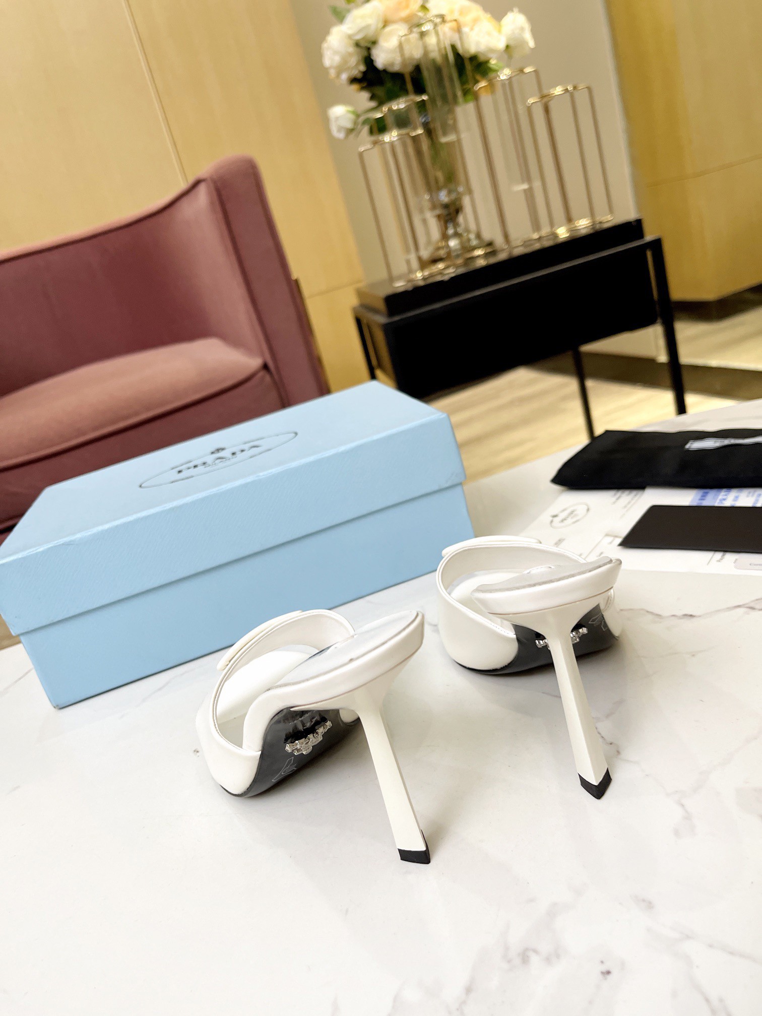 Prada Heeled Sandals 75mm in White Brushed Leather