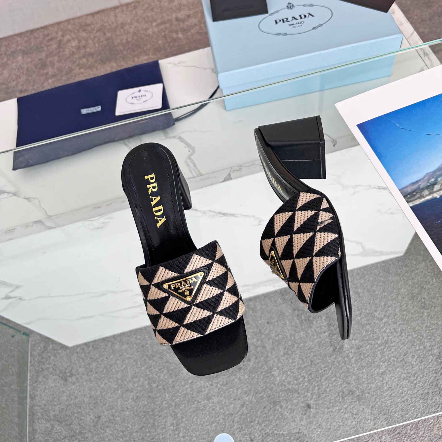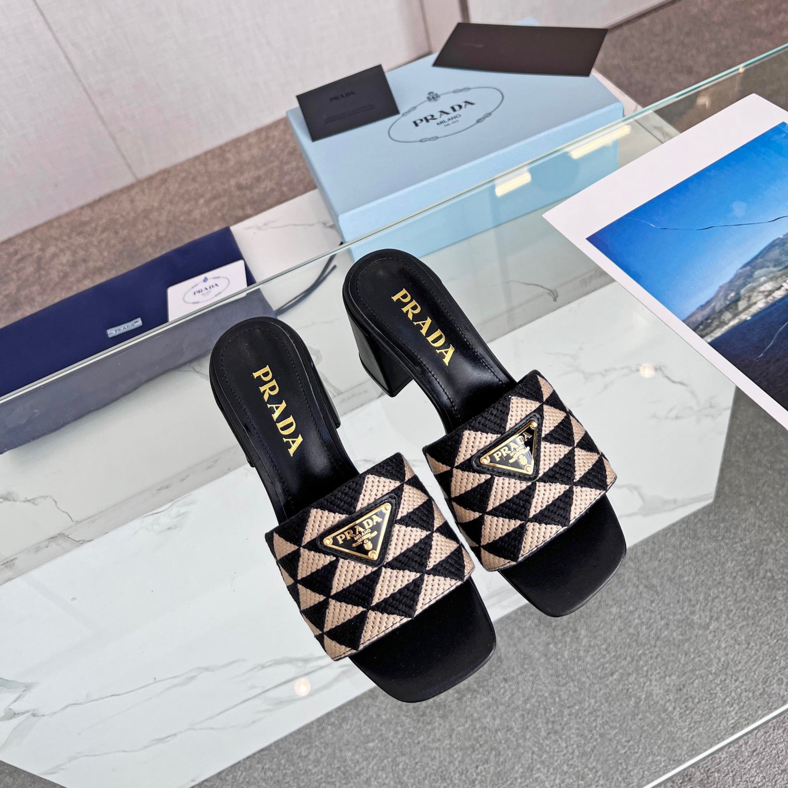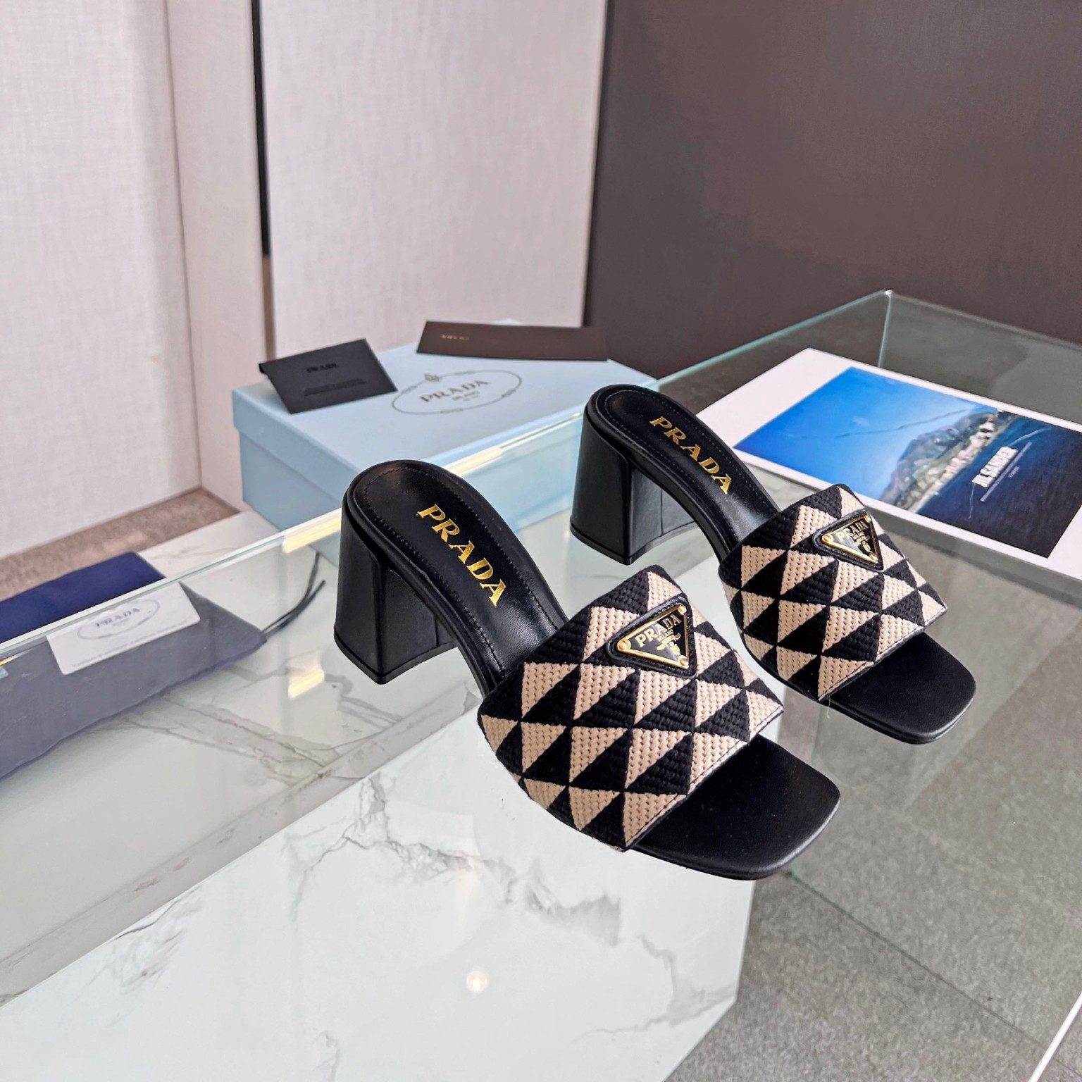 Prada’s Heeled Slide Sandalss are embellished with the brand’s signature metal triangle logo. Crafted from embroidered fabric, they have a chunky 65mm heel for comfort. Style yours with everything from printed dresses to denim.