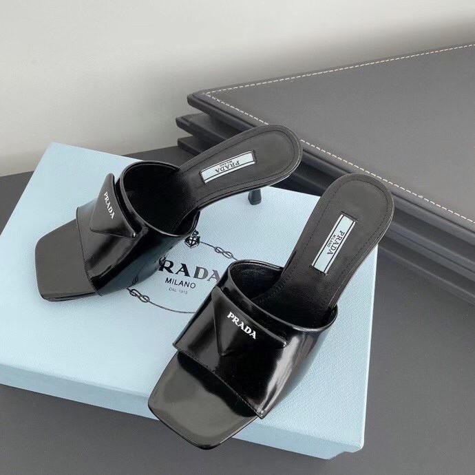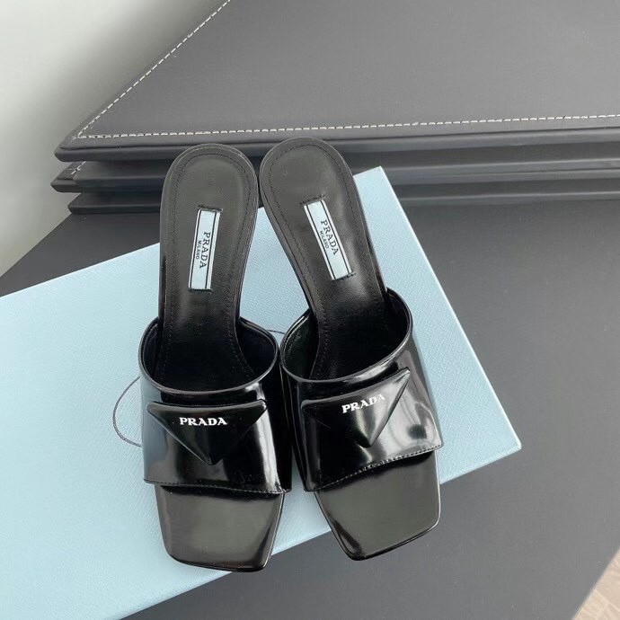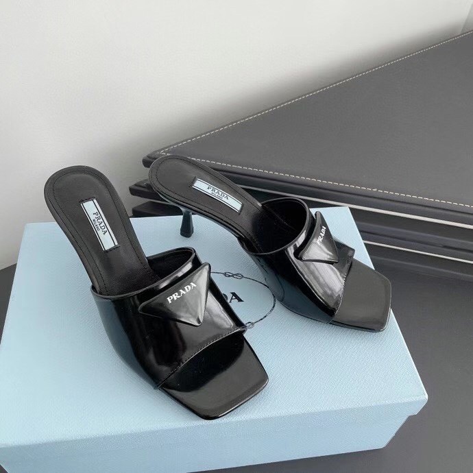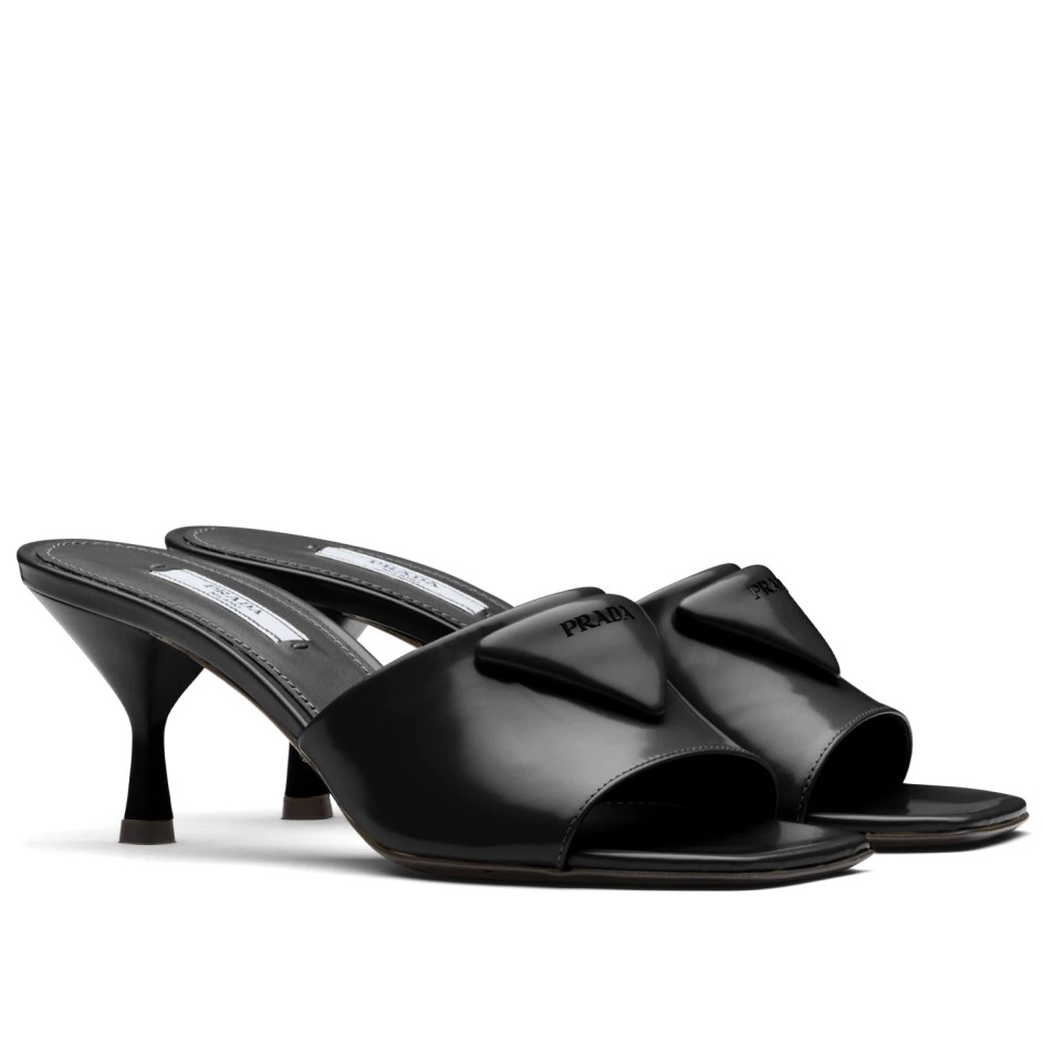 Let your soles speak of your devotion to Prada with these heeled sandals. Made from smooth calfskin leather, they’re adorned with padded logo triangles and set atop 65mm flared heels.