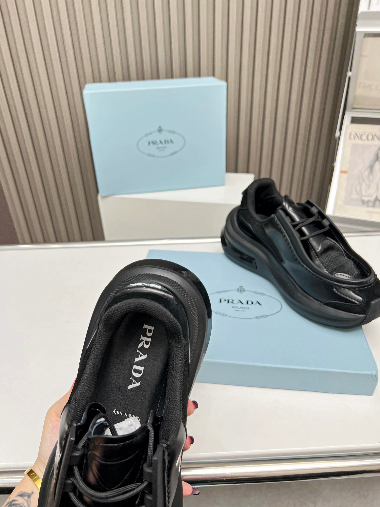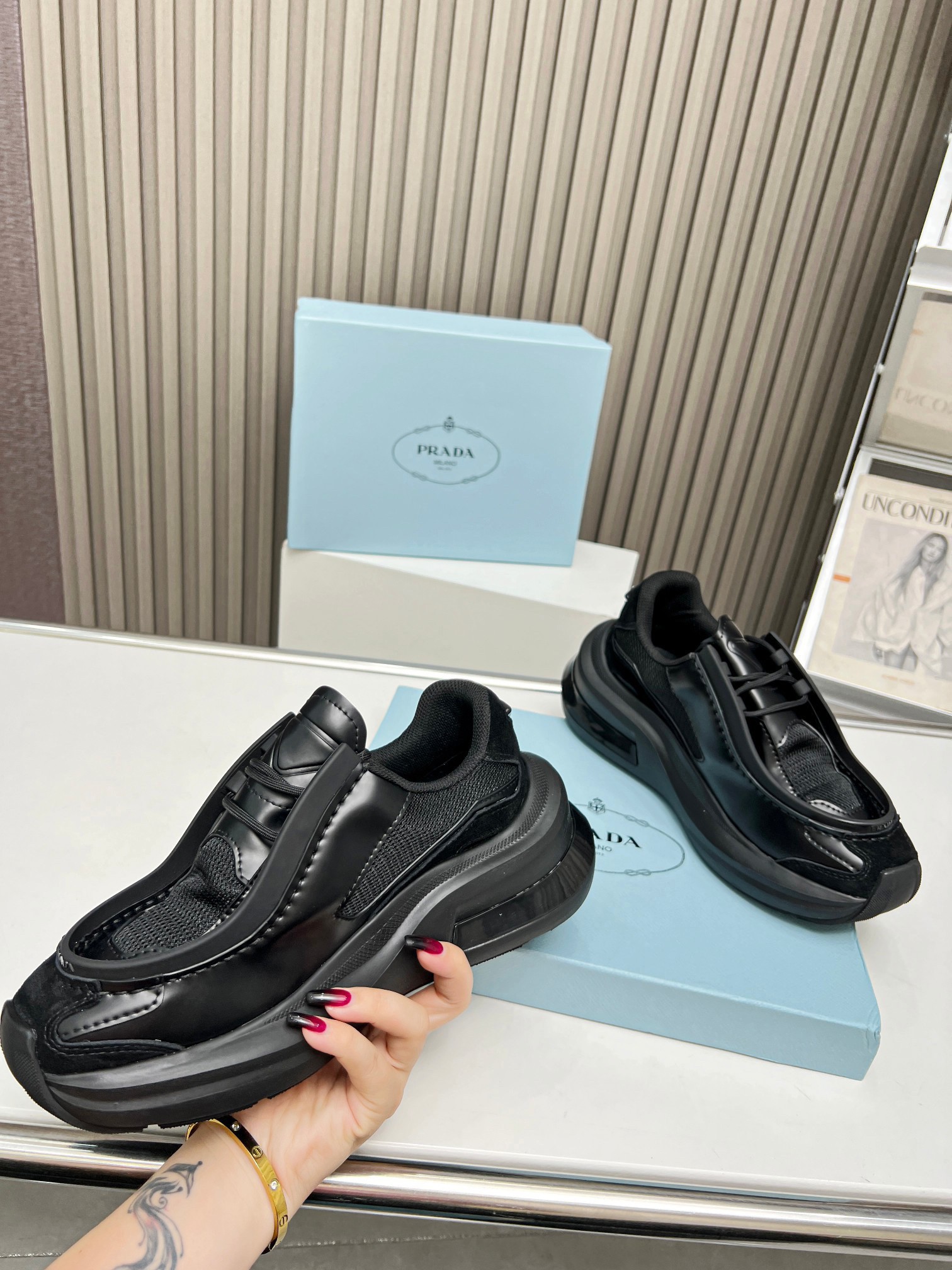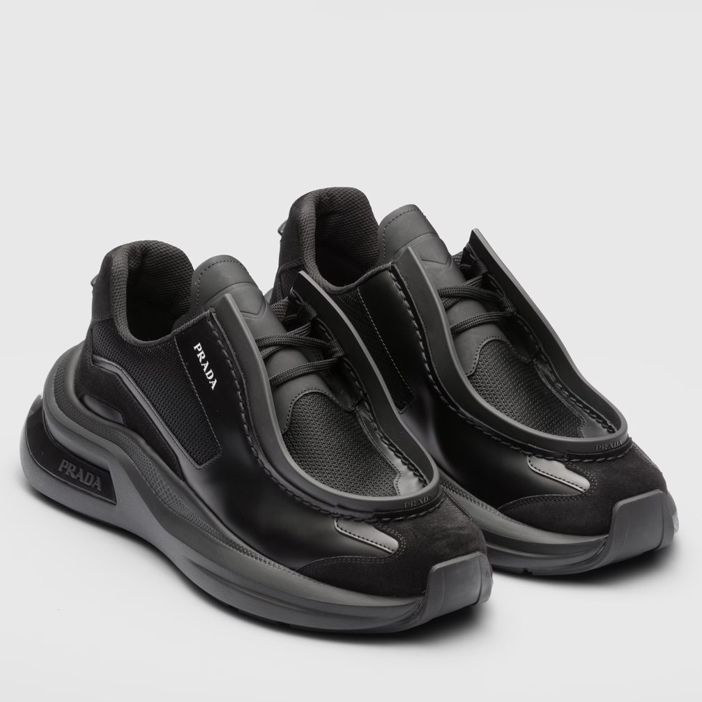 Prada Men’s Sneakers in Black Leather with Bike Fabric