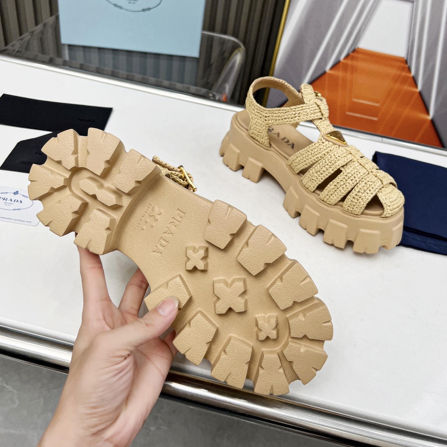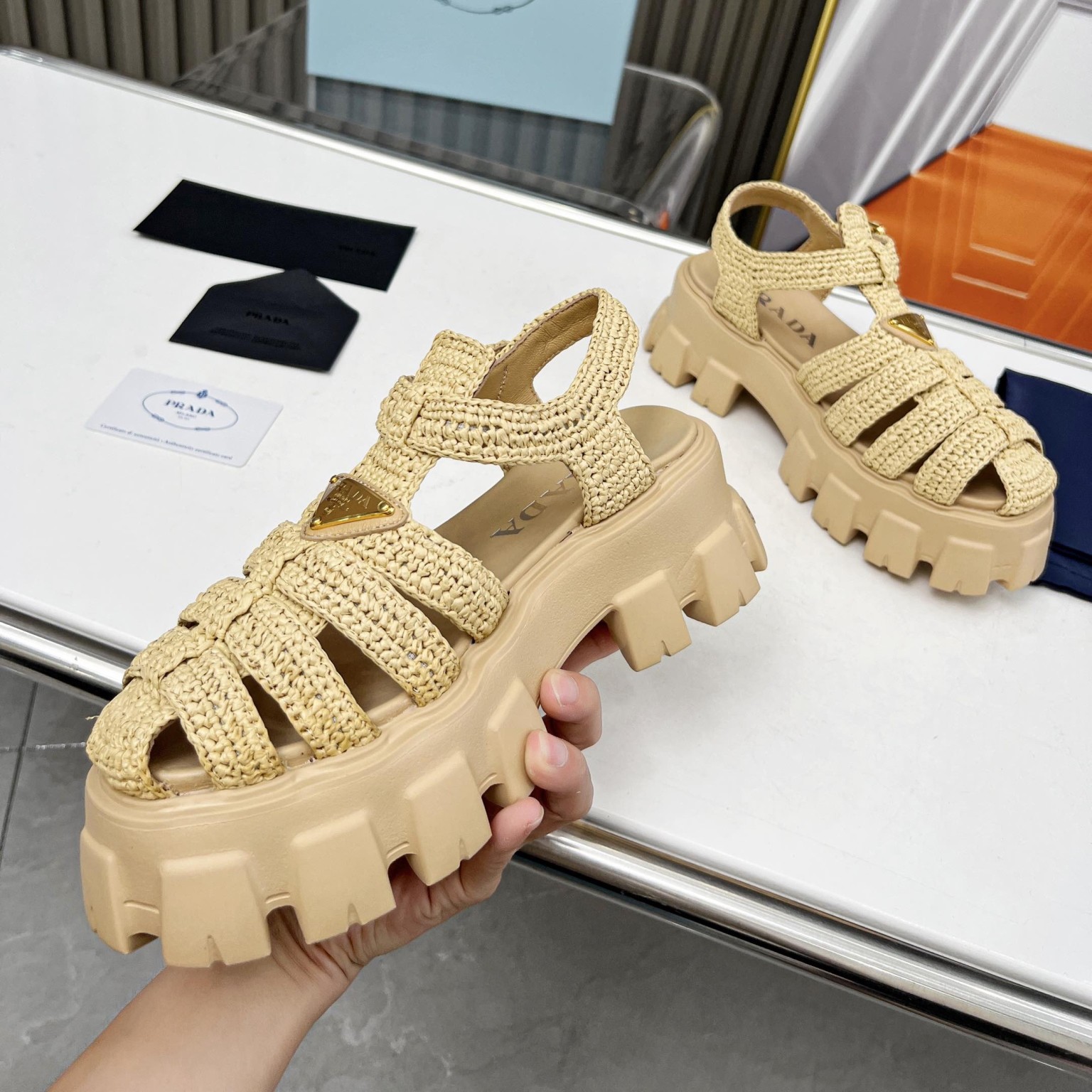 The iconic Monolith style is reimagined for the summer season. Sophisticated crochet and fine artisan workmanship meet in this sporty design with oversized volumes. New experimentation and tradition are embodied by the distinctive details of the shoe like the metal triangle logo.