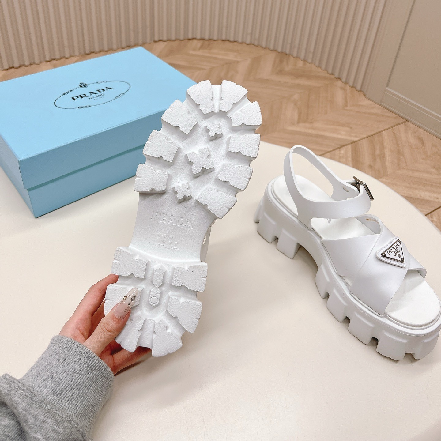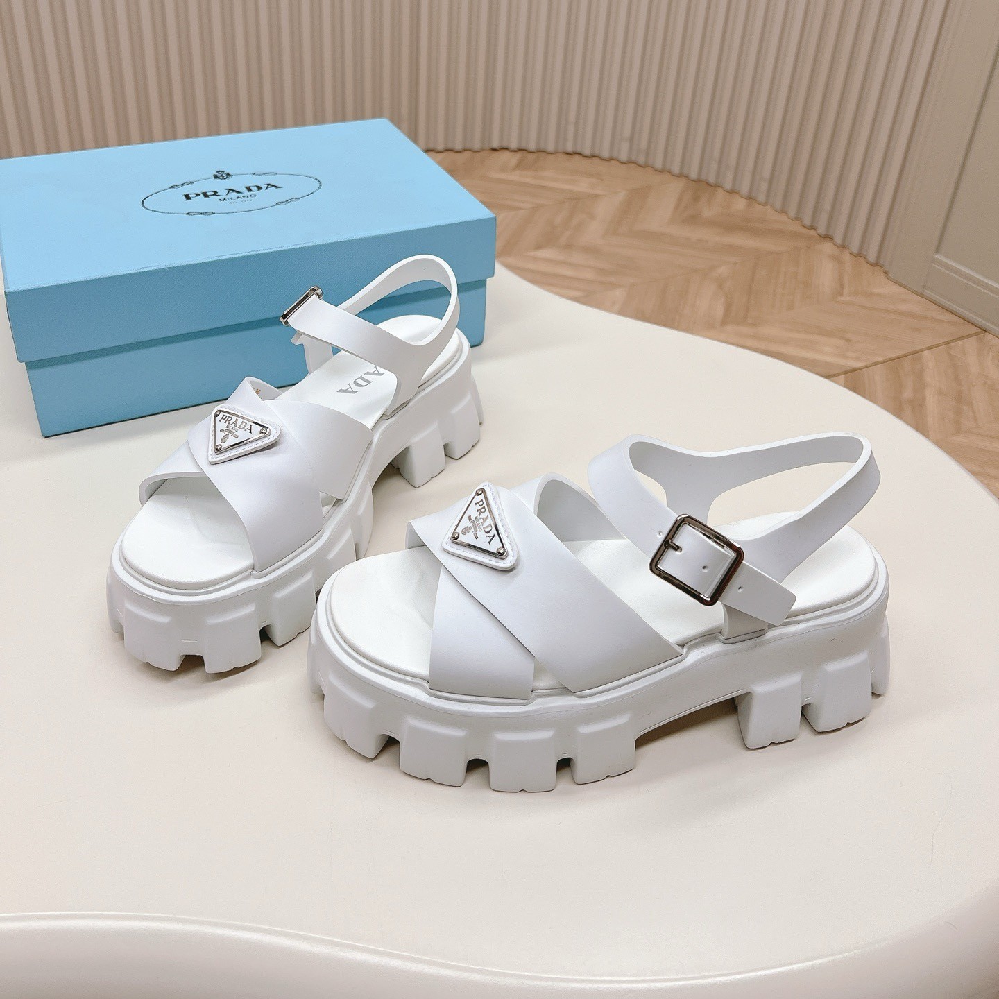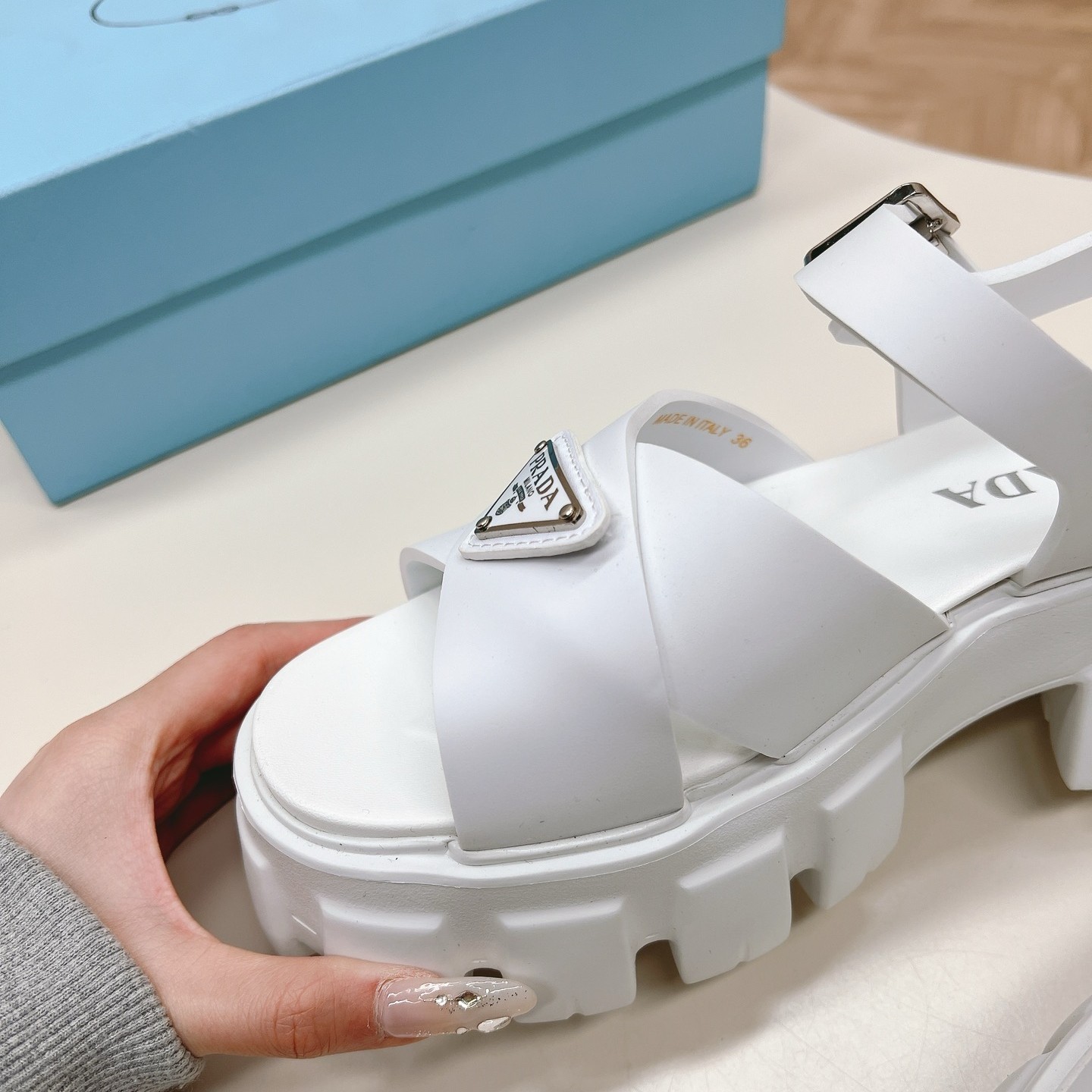 These rubber sandals with sporty touches and contemporary details are an emblem of Prada’s unconventional and dual soul. The style characterized by the distinctive Monolith sole is completed by the iconic signature of the enameled metal triangle logo.
