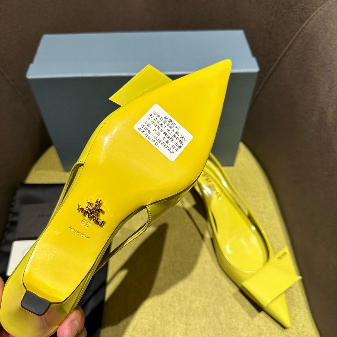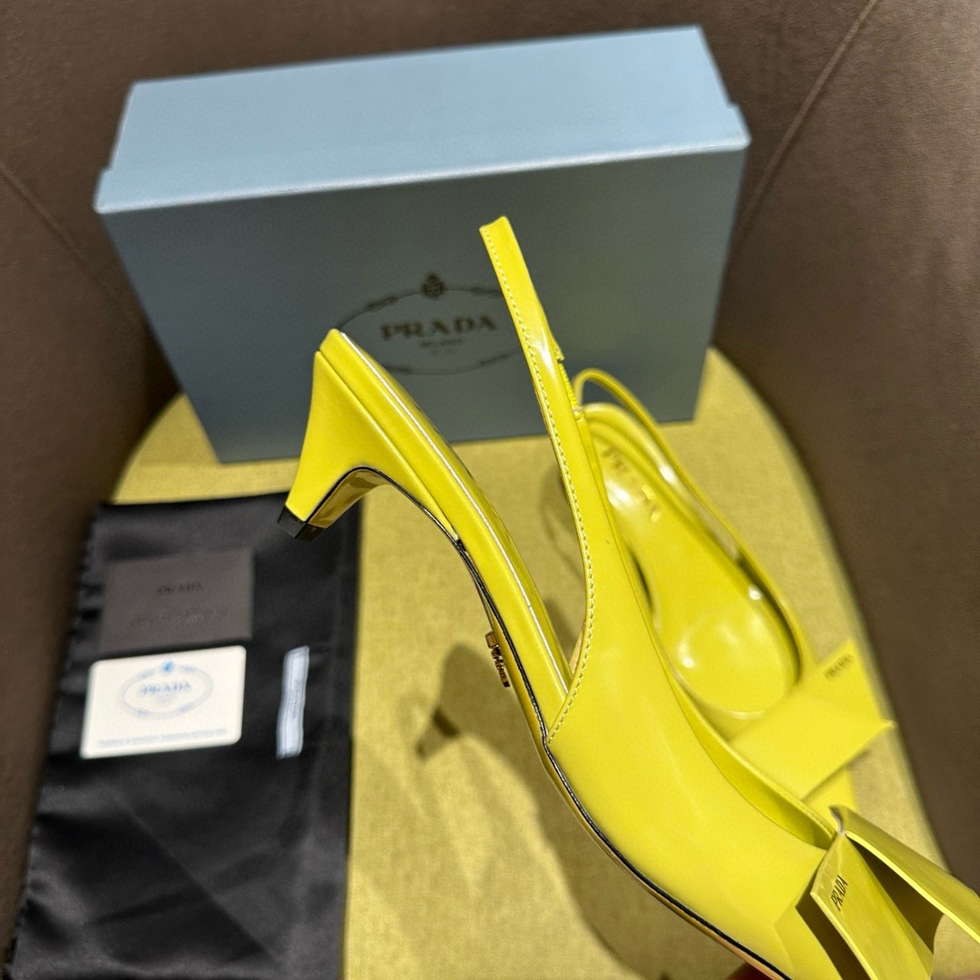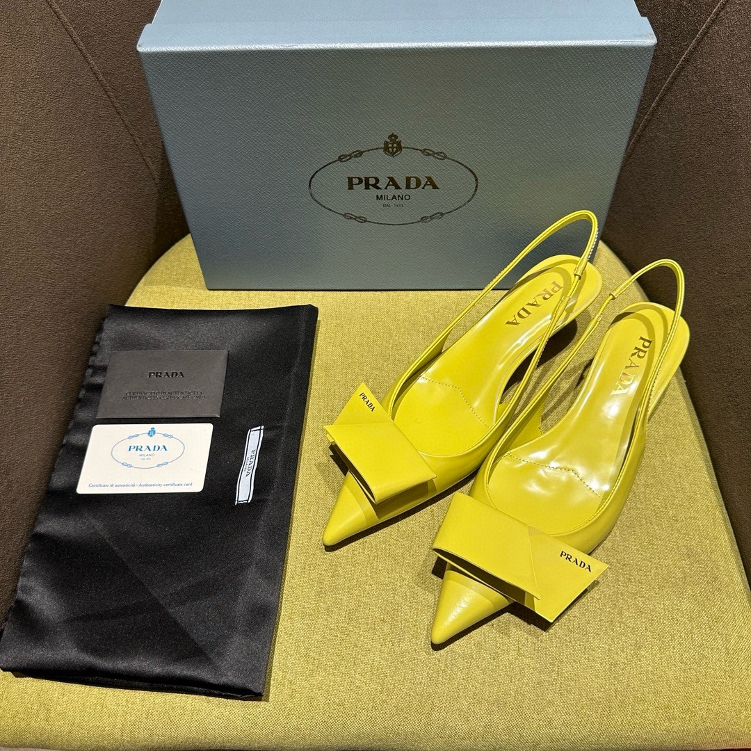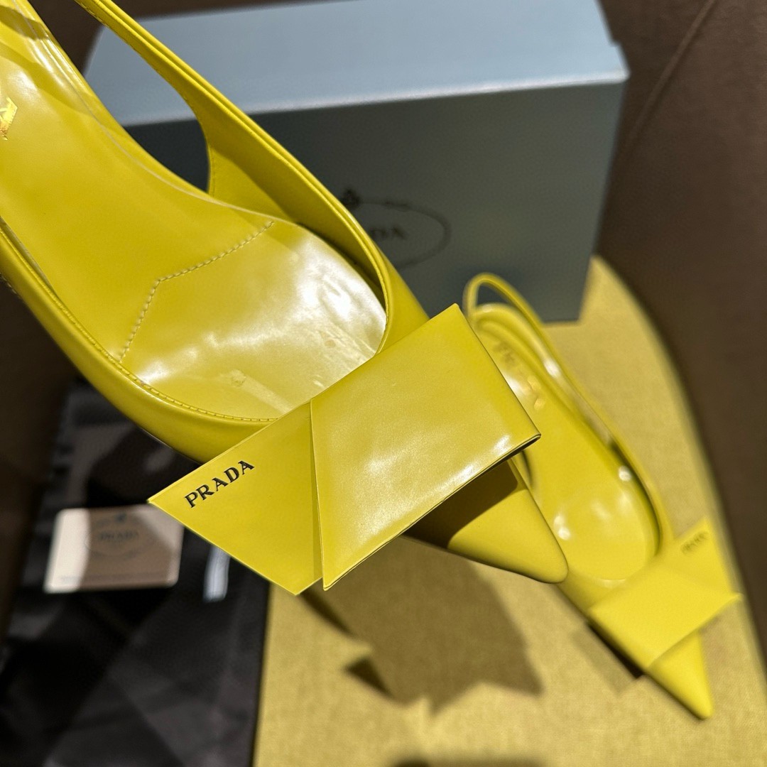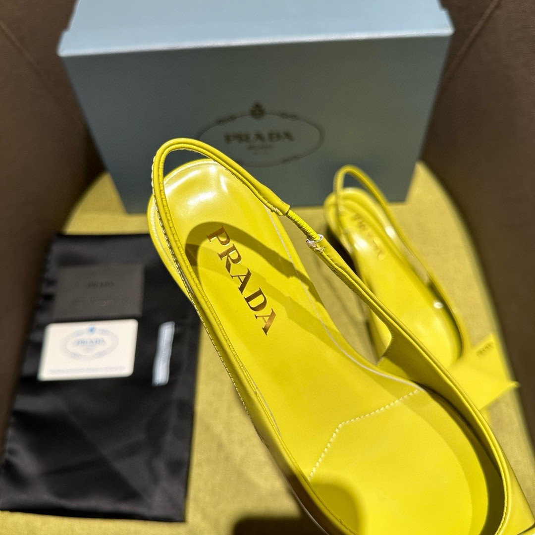 Prada Slingback Pumps 45mm in Yellow Brushed Leather