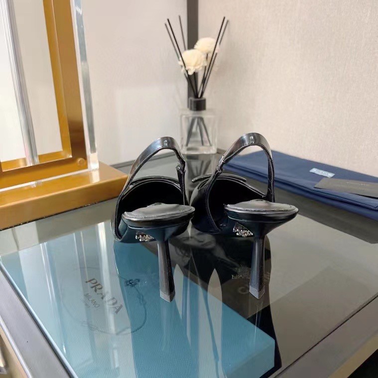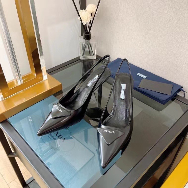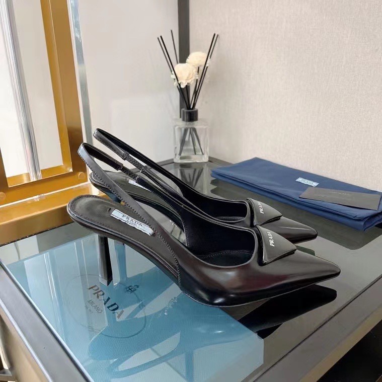 Prada Slingback Pumps 75MM In Noir Brushed Leather