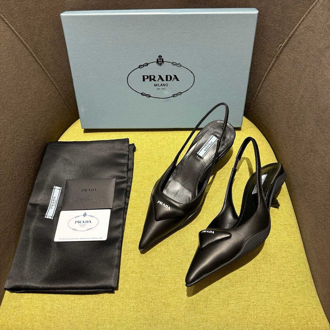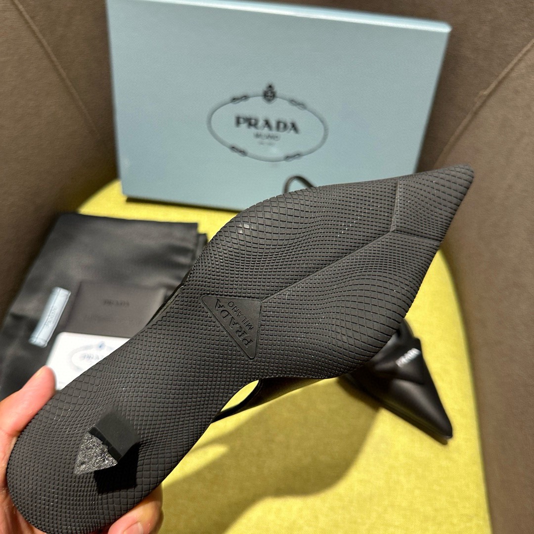 Revisiting a design from the Prada archives of the ’90s, the rubber shell sole envelops the upper of these brushed leather slingback pumps, creating a hybrid silhouette that blends a feminine pointy shape and sporty references. A distinctive element of the Spring Summer 2021 collection is the comma heel, inspired by styles from the same decade. New variations arrive for the iconic triangle, which turns into a slightly padded leather detail featuring the screen-printed Prada logo.