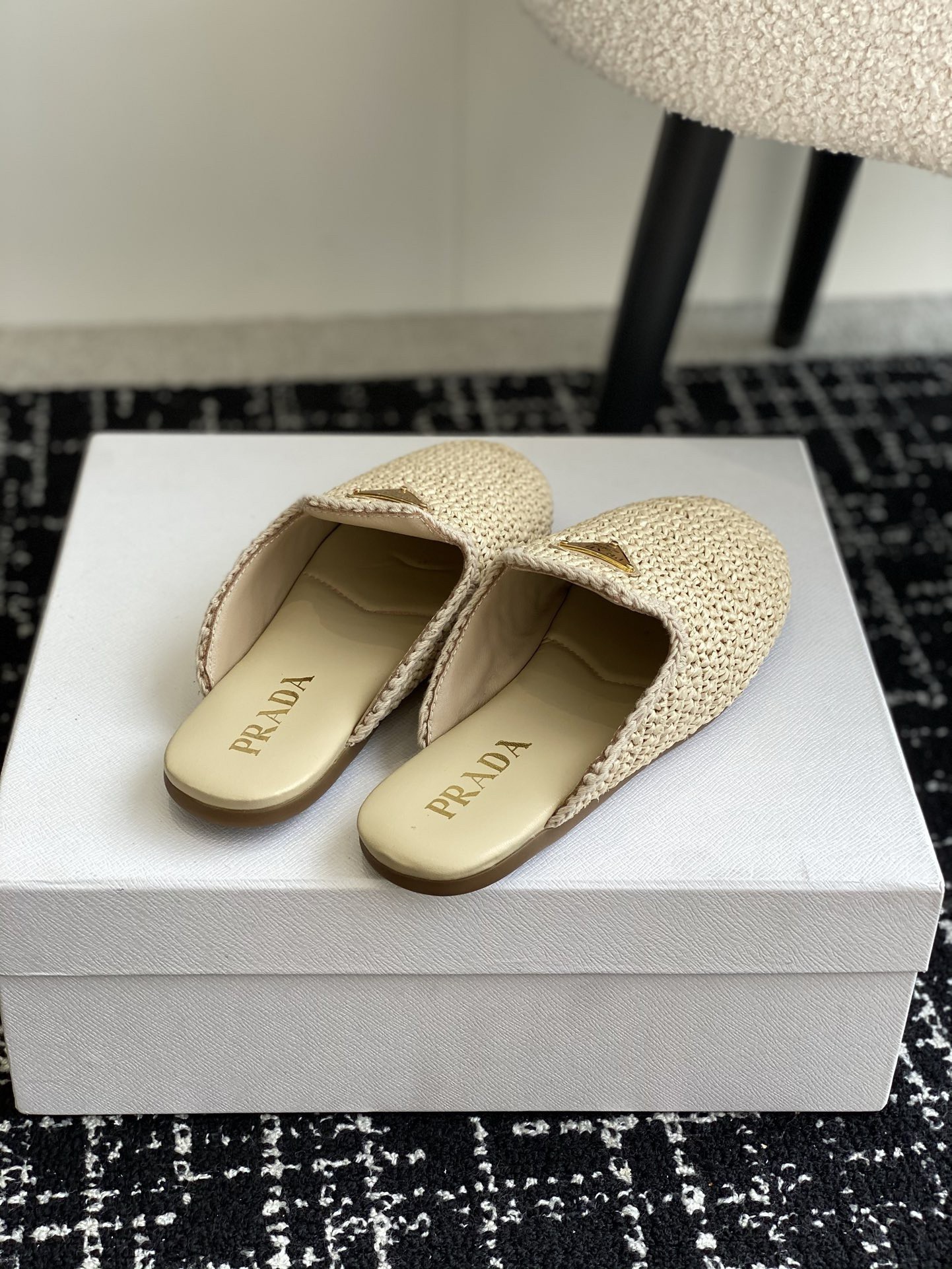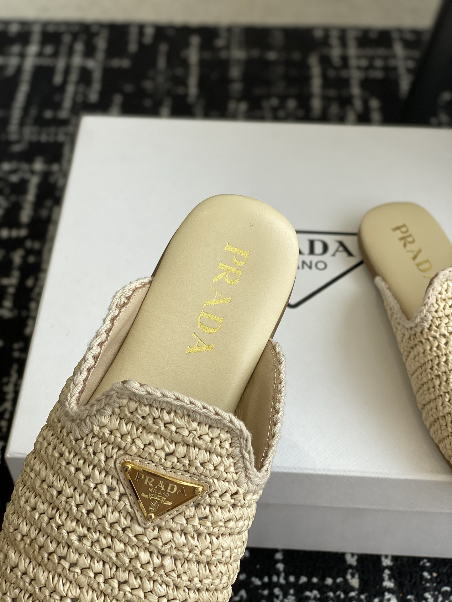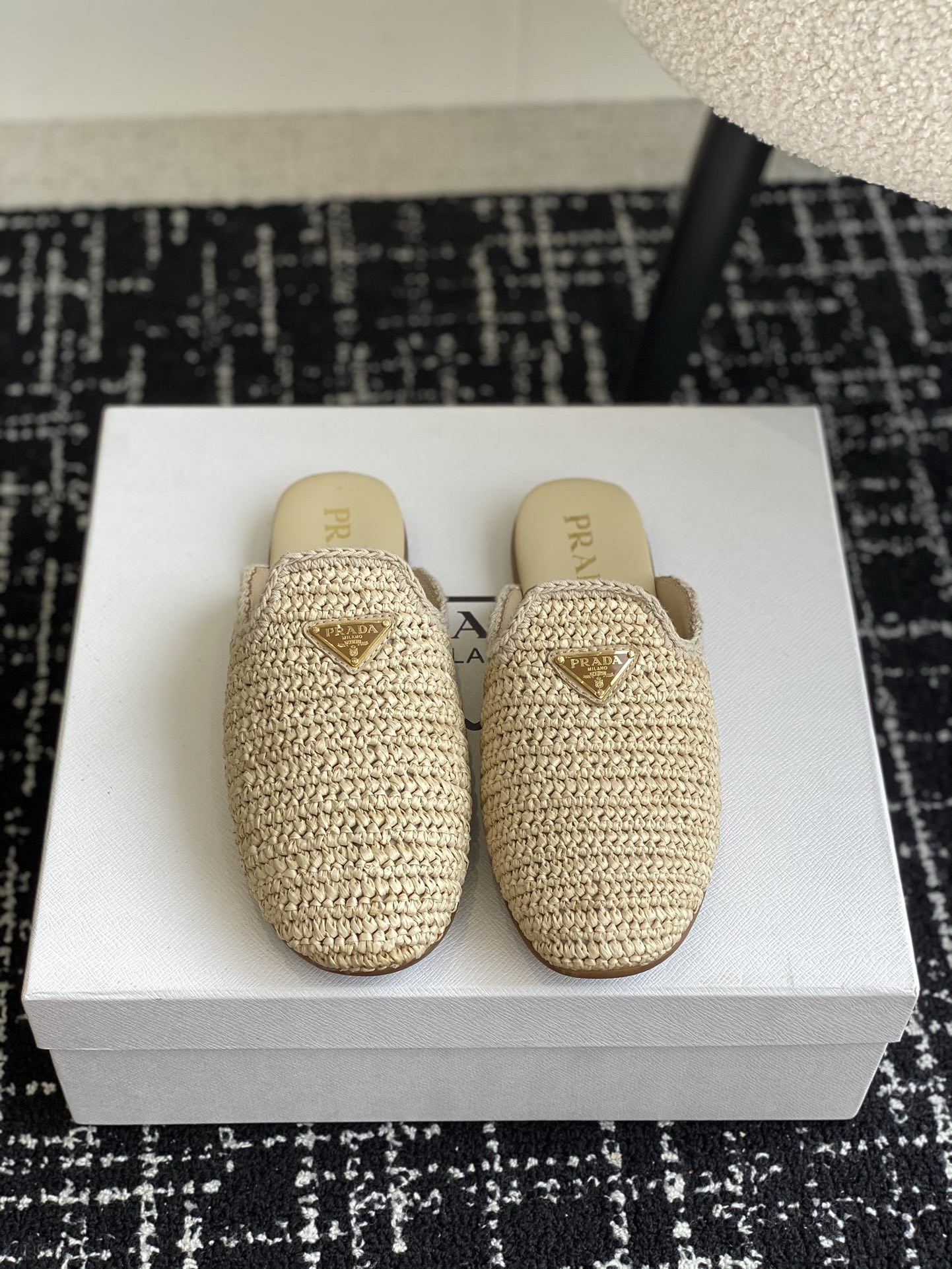 These mules with a light, tapered silhouette are enhanced by the crochet’s texture, which evokes a summery mood, giving the design a unique touch. The style completed with a thin rubber sole is decorated with the iconic enameled metal triangle logo.