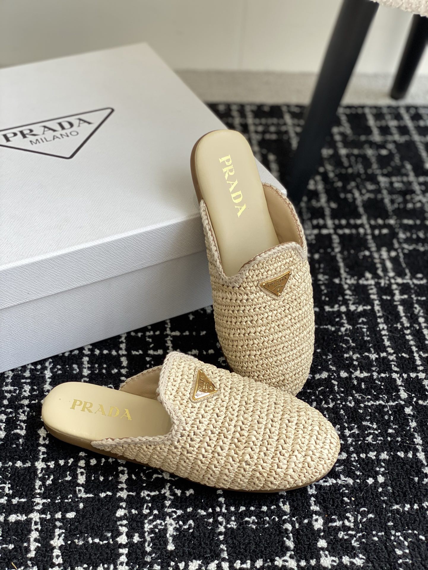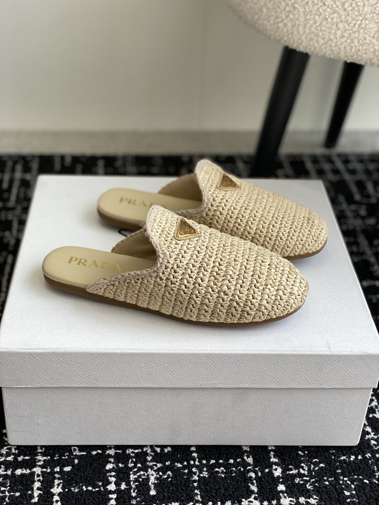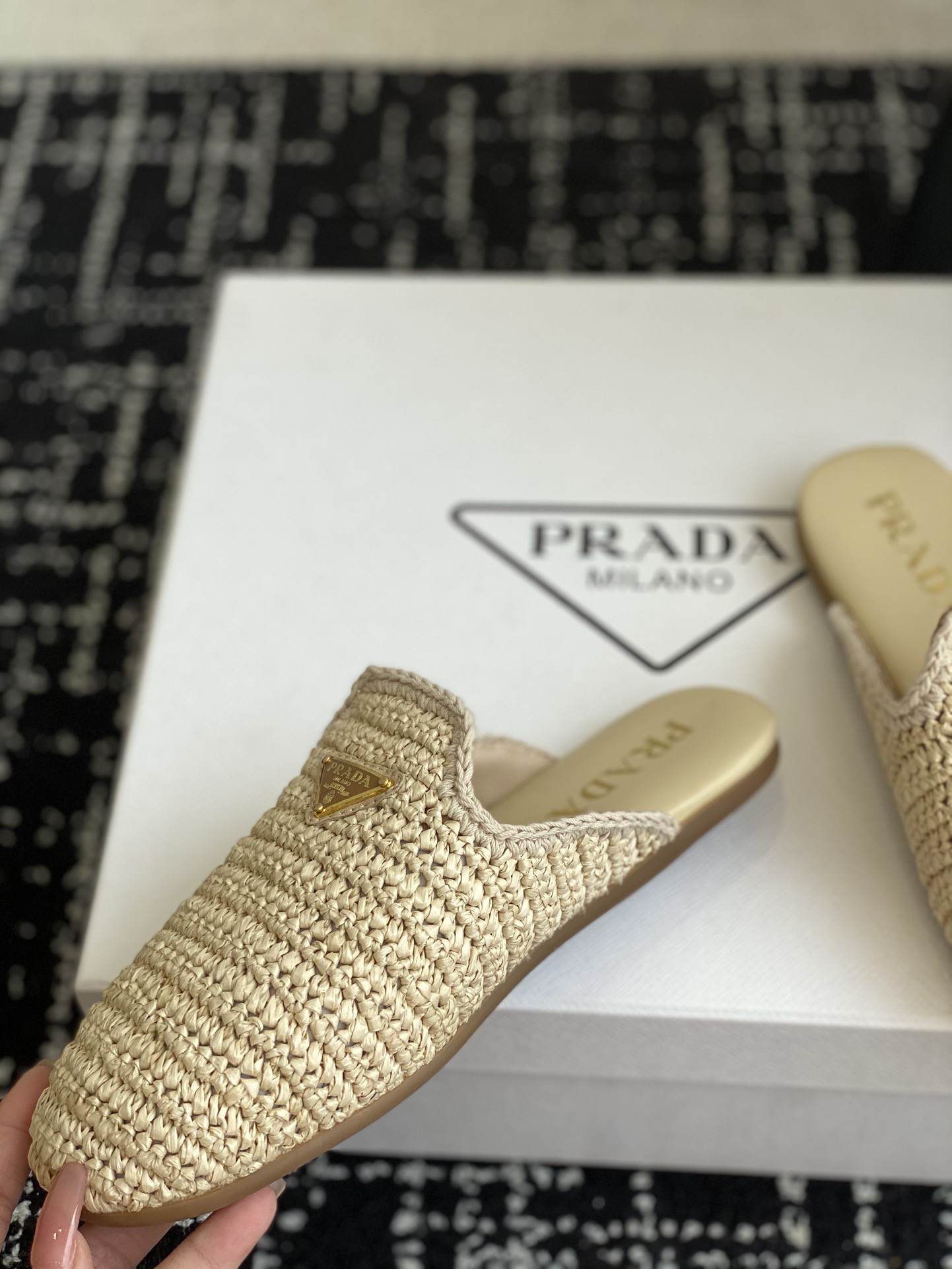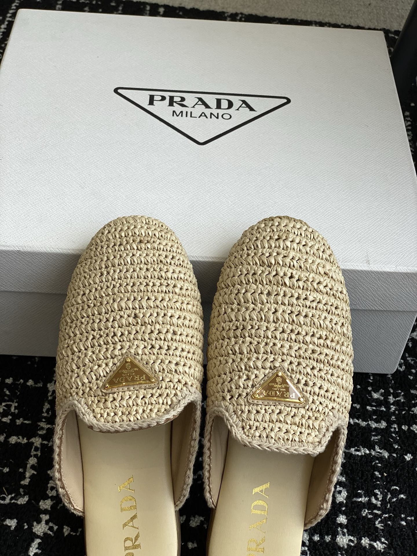 These mules with a light, tapered silhouette are enhanced by the crochet’s texture, which evokes a summery mood, giving the design a unique touch. The style completed with a thin rubber sole is decorated with the iconic enameled metal triangle logo.