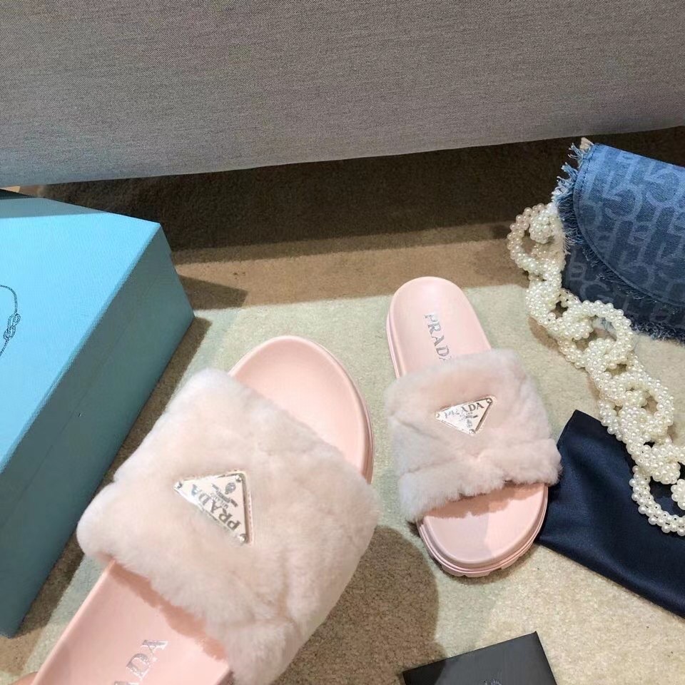 For a cosy poolside aesthetic, opt for Prada’s pink slides. Made in Italy with quilted shearling straps. they’re accented with the label’s triangular emblem logo and are set on chunky rubber soles.