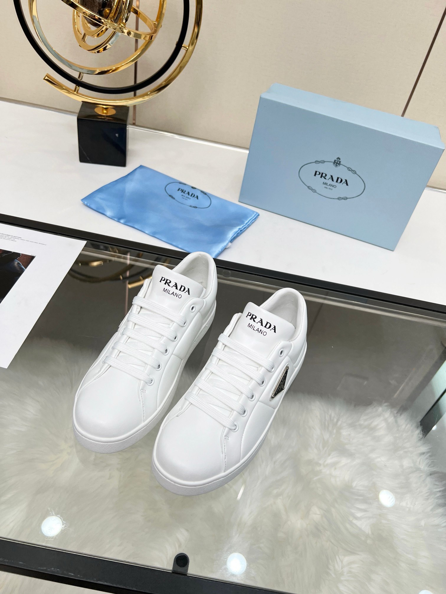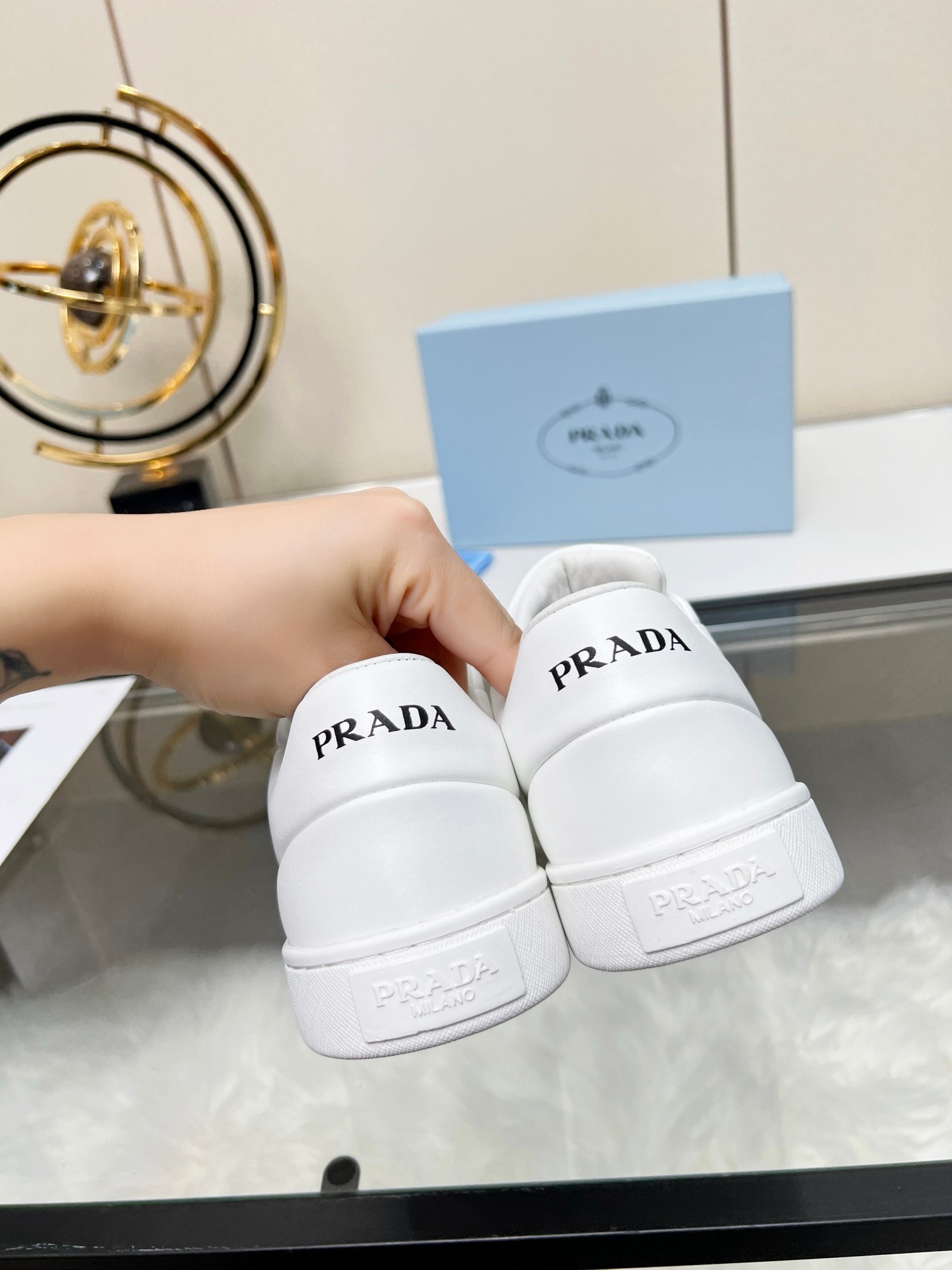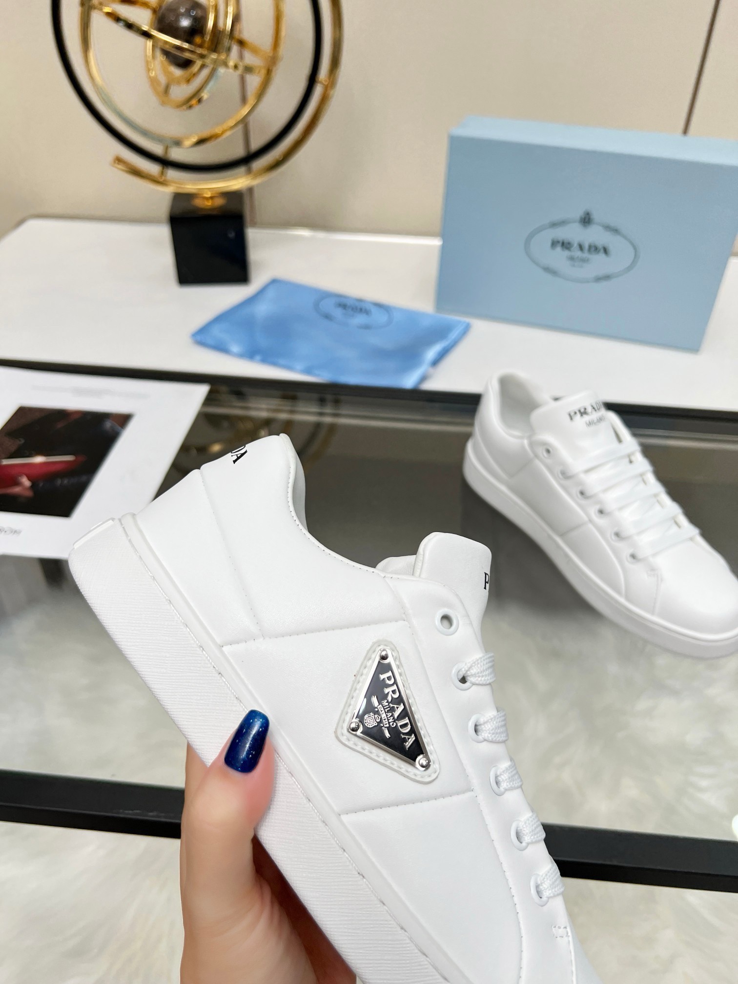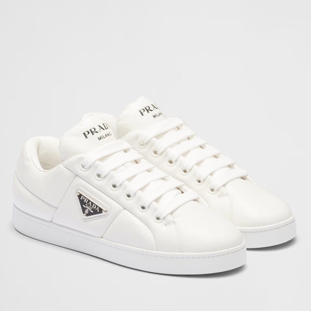 These sneakers with a sporty, minimalist attitude are made of soft nappa leather that is lightly padded for a light, elegant effect. The lettering logo stands out on the tongue while the enameled metal triangle logo decorates the upper.