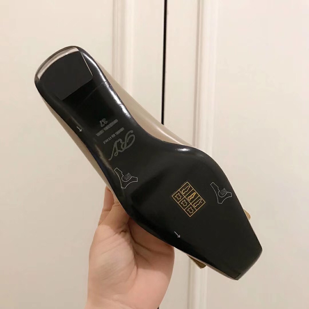 Set on signature 45mm “Skyscraper” heels, the Belle Vivier pumps are testament to Roger Vivier’s elegant approach to design. Crafted from glossy patent calfskin, the silhouette features a square toe bearing the logo-engraved buckle synonymous with the footwear label.