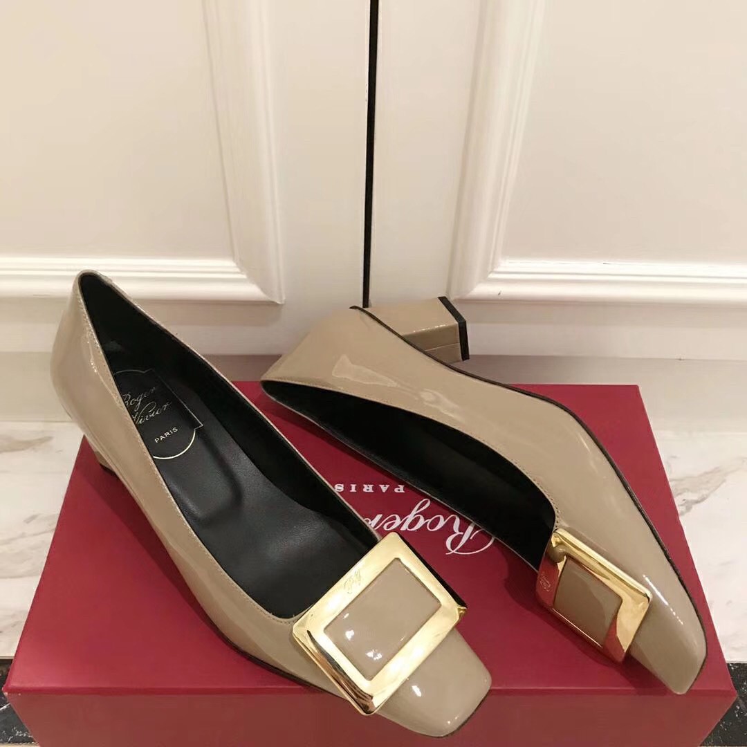 Roger Vivier Belle Vivier 45mm Pumps In Beige Patent Leather