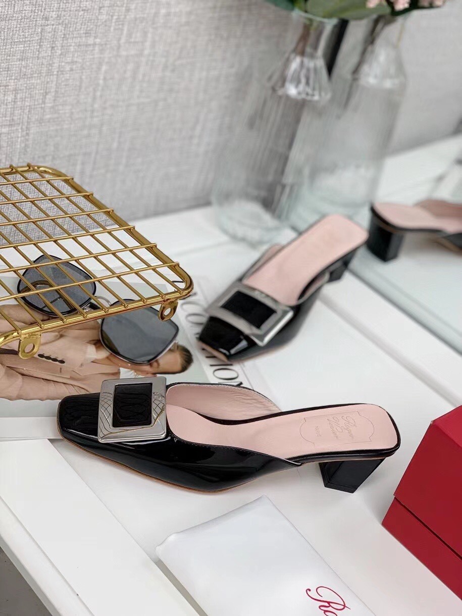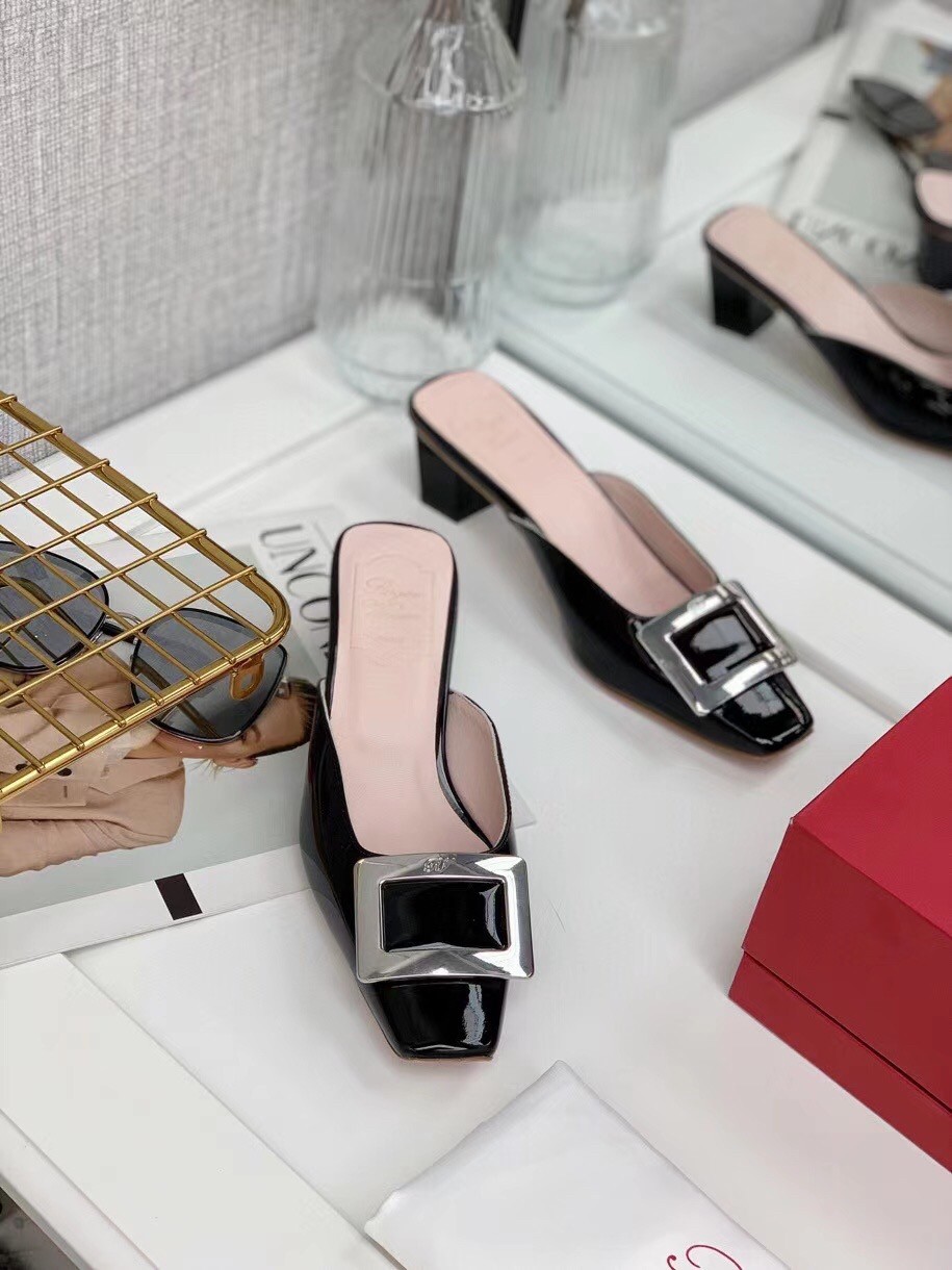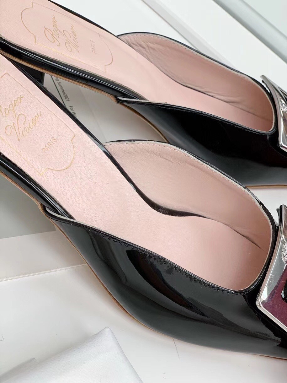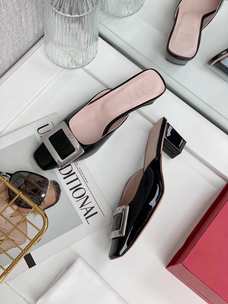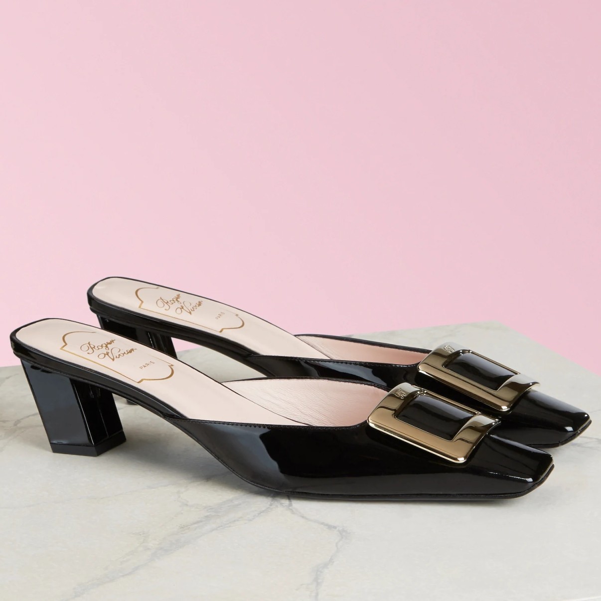 Roger Vivier’s iconic Belle Vivier design undergoes a transformation, appearing here as a mule – a must-have for fall. It’s made in Italy from patent leather with square toes, slanted 45mm block heels and the label’s signature buckle – celebrated throughout French film and culture since 1965.