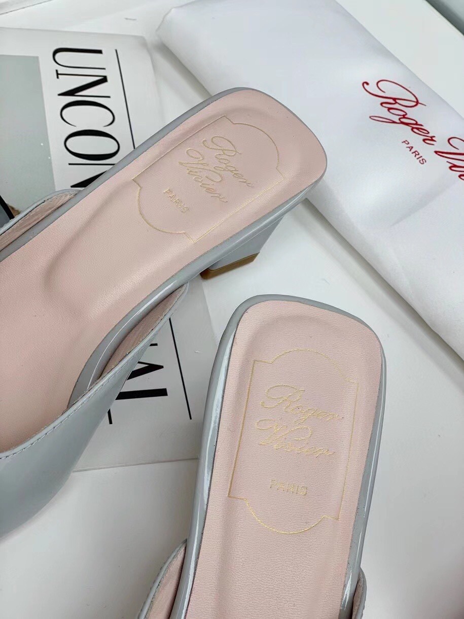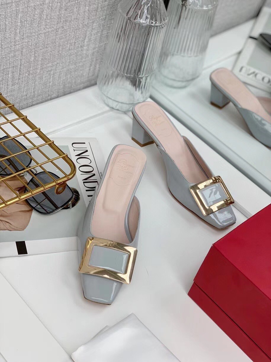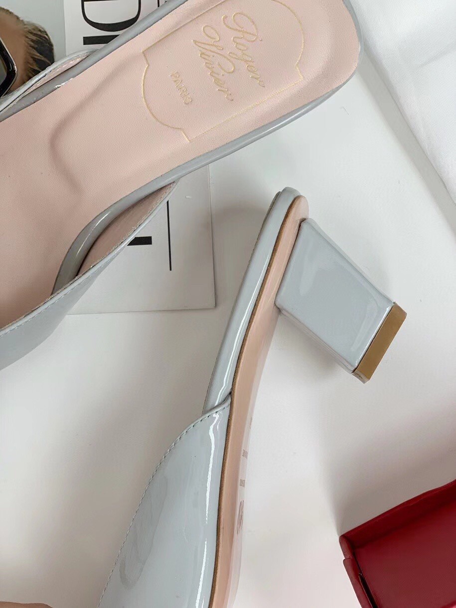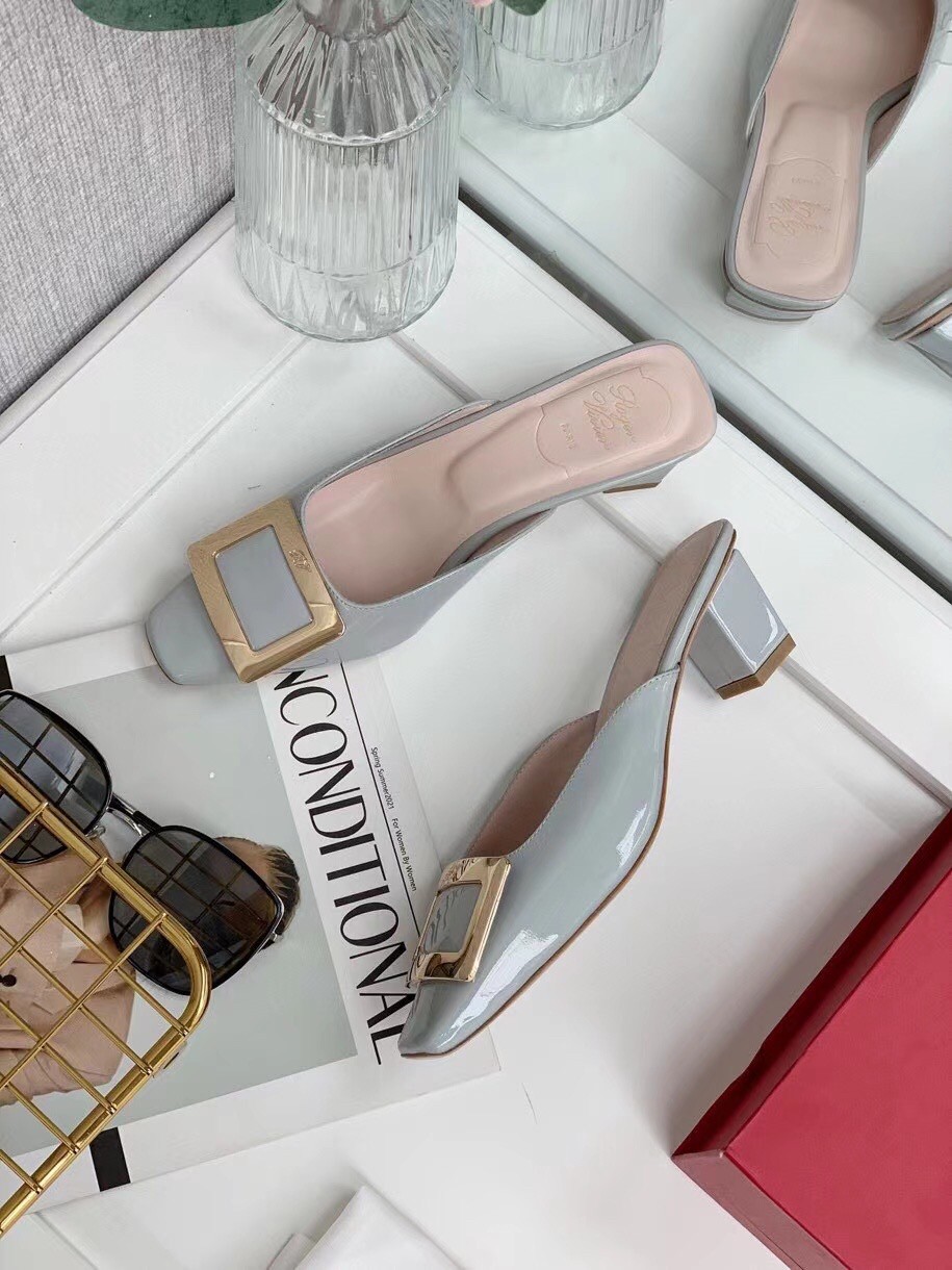 Roger Vivier Belle Vivier Metal Buckle Mules in Blue Patent Leather
