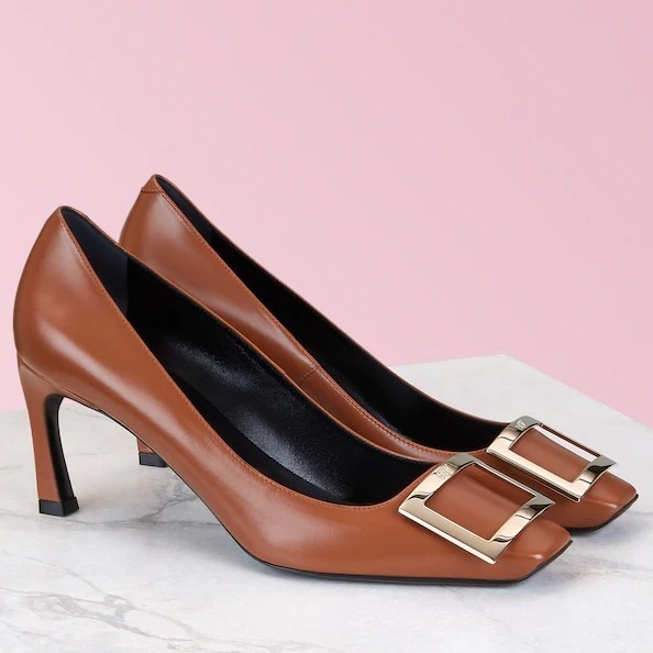 Accent your work wardrobe with Roger Vivier’s Belle Vivier pumps. Made from smooth calfskin leather finished with metal buckle, the classic yet innovative design of the curved Trompette heel lends a timeless allure to the Belle Vivier, they’ll prove an easy pick for grown-up glamour.